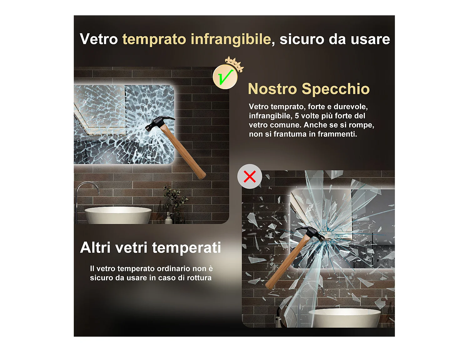 100 x 60 cm,AICA Specchio da Bagno LED con Luce,Regolabili,memoria,CRI>90,autospegnimento,interruttore touch