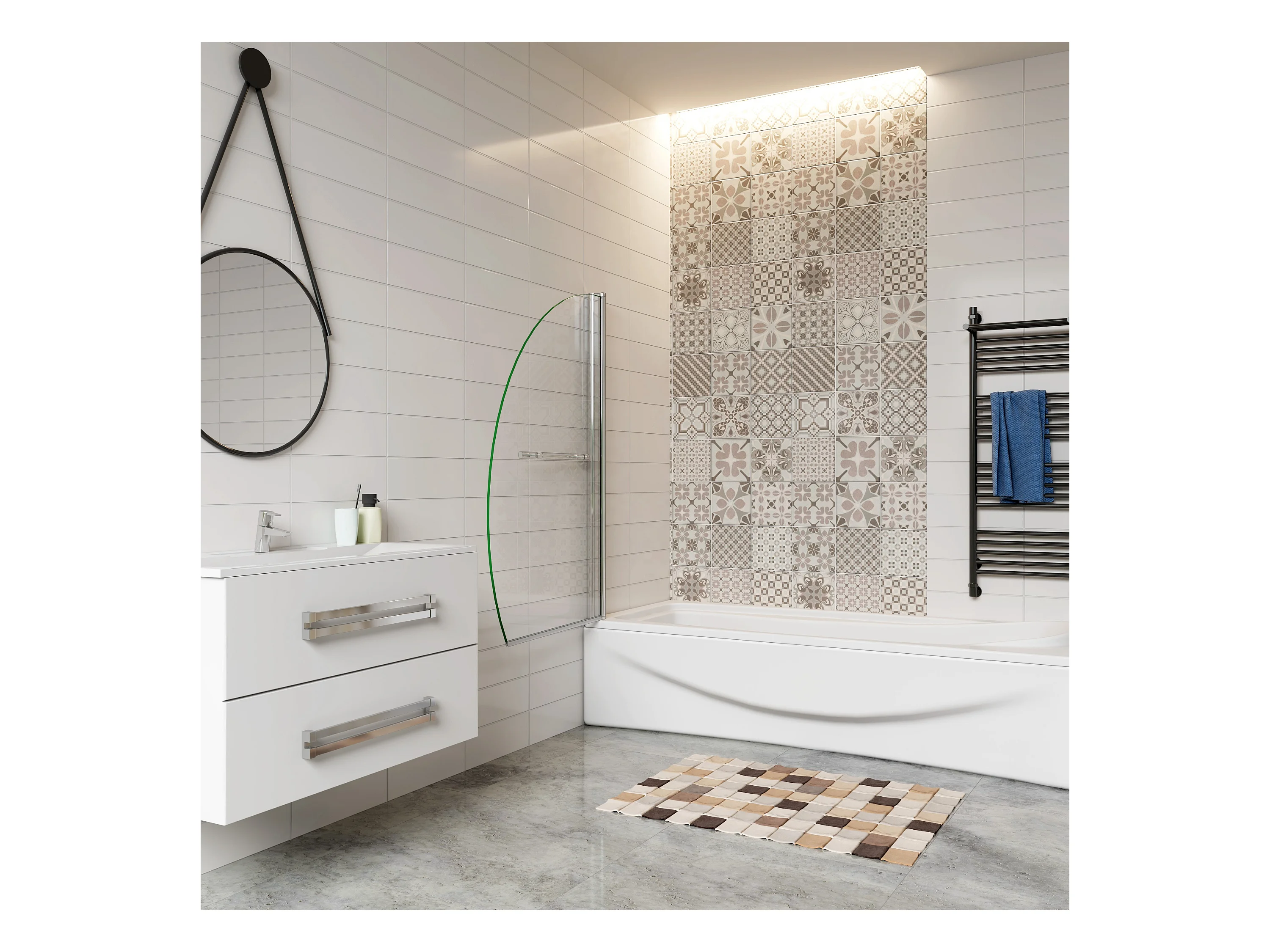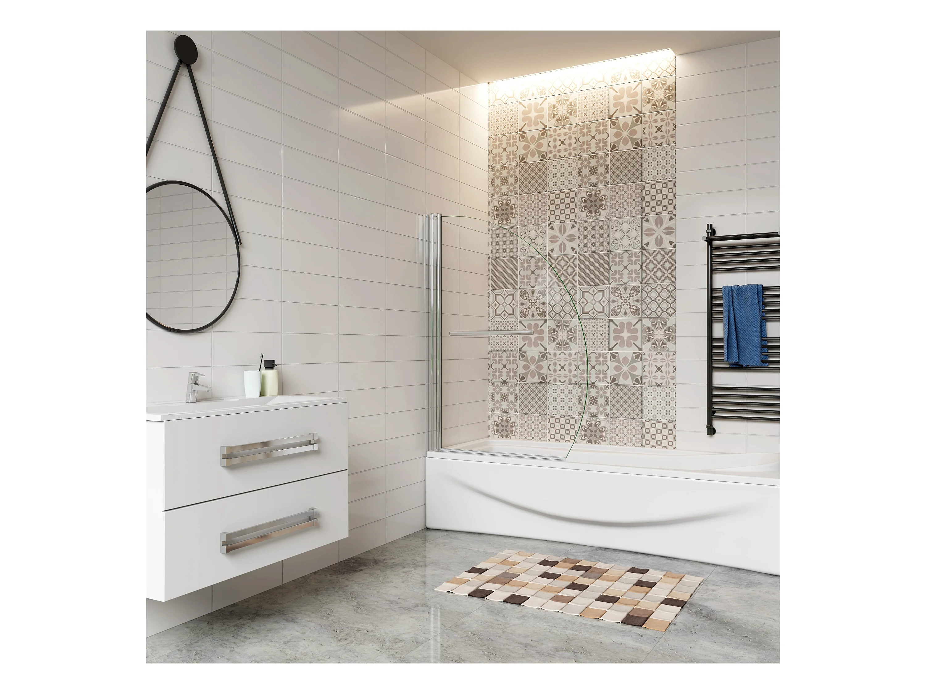 100x150cm Parete Vasca Doccia Sopravasca Singolo Pannello Forma Vela Girevole in Vetro Temperato 8 mm Anticalcare Telaio Cromato Lucido