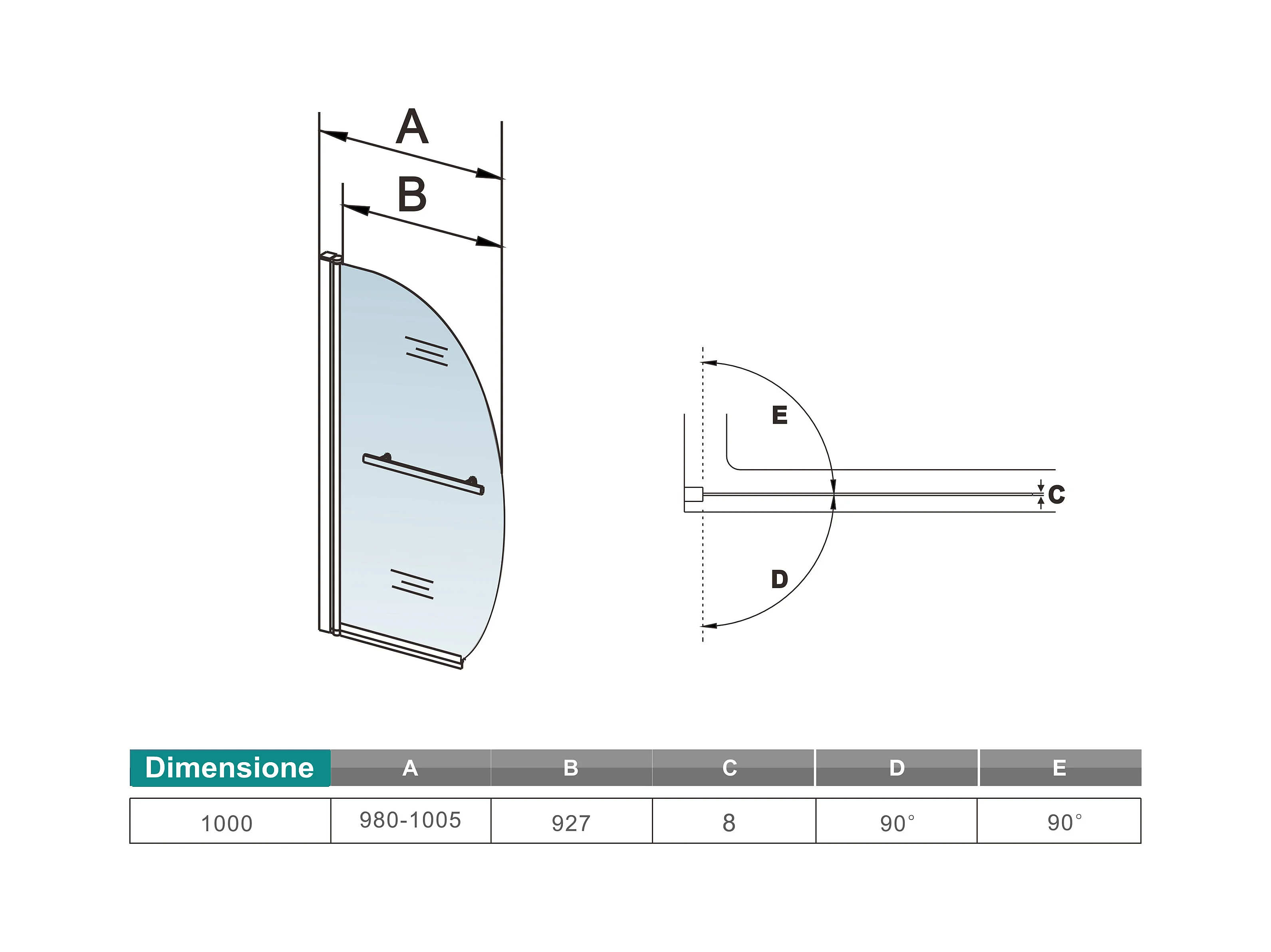 100x140 cm Parete Per Vasca Apribile 180 Gradi Montaggio Verso Destro Irreversibile in Vetro Temperato 6 mm Anticalcare Fascia Centrale Opaca
