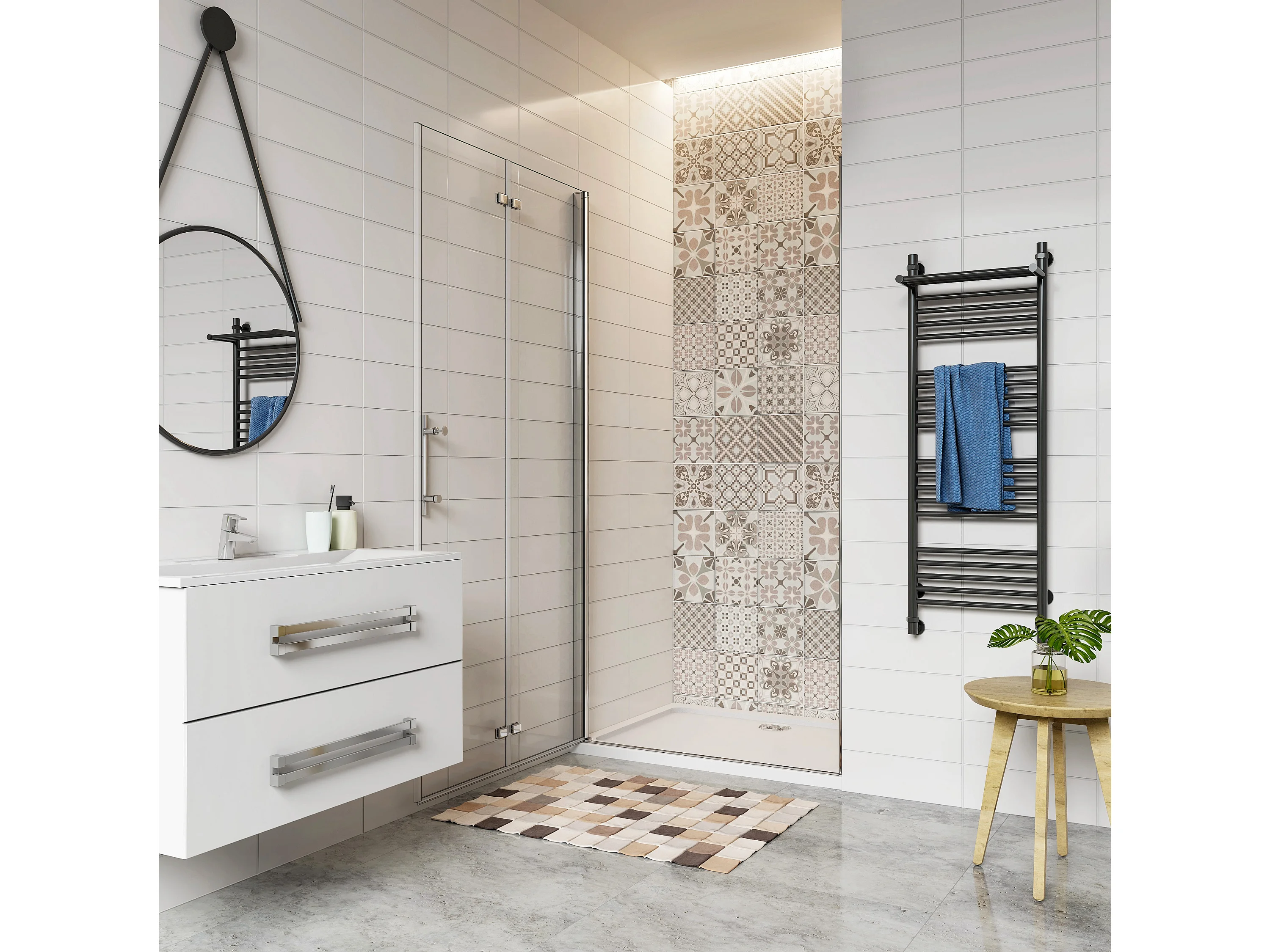 120x190cm Porta Doccia per Nicchia Apertura Battente Pieghevole in Vetro Temperato Trasparente 5 mm Anticalcare Telaio Nero Opaco