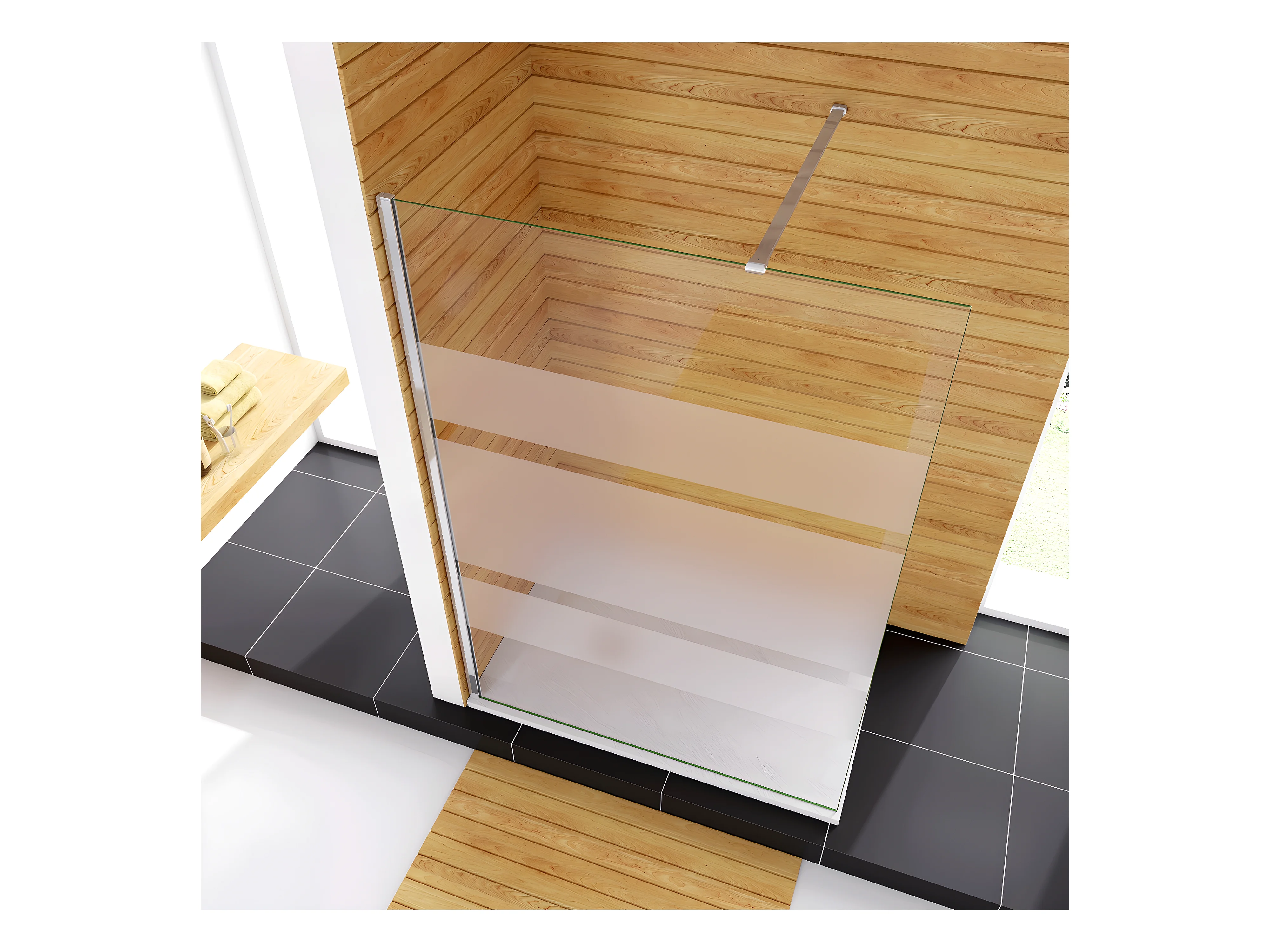 110x190cm Box Doccia Walk In Parete Fissa in Vetro Temperato 6 mm Anticalcare Multi Fasce Satinate Opache con Barra Stabilizzatrice 90cm Cromo Lucido