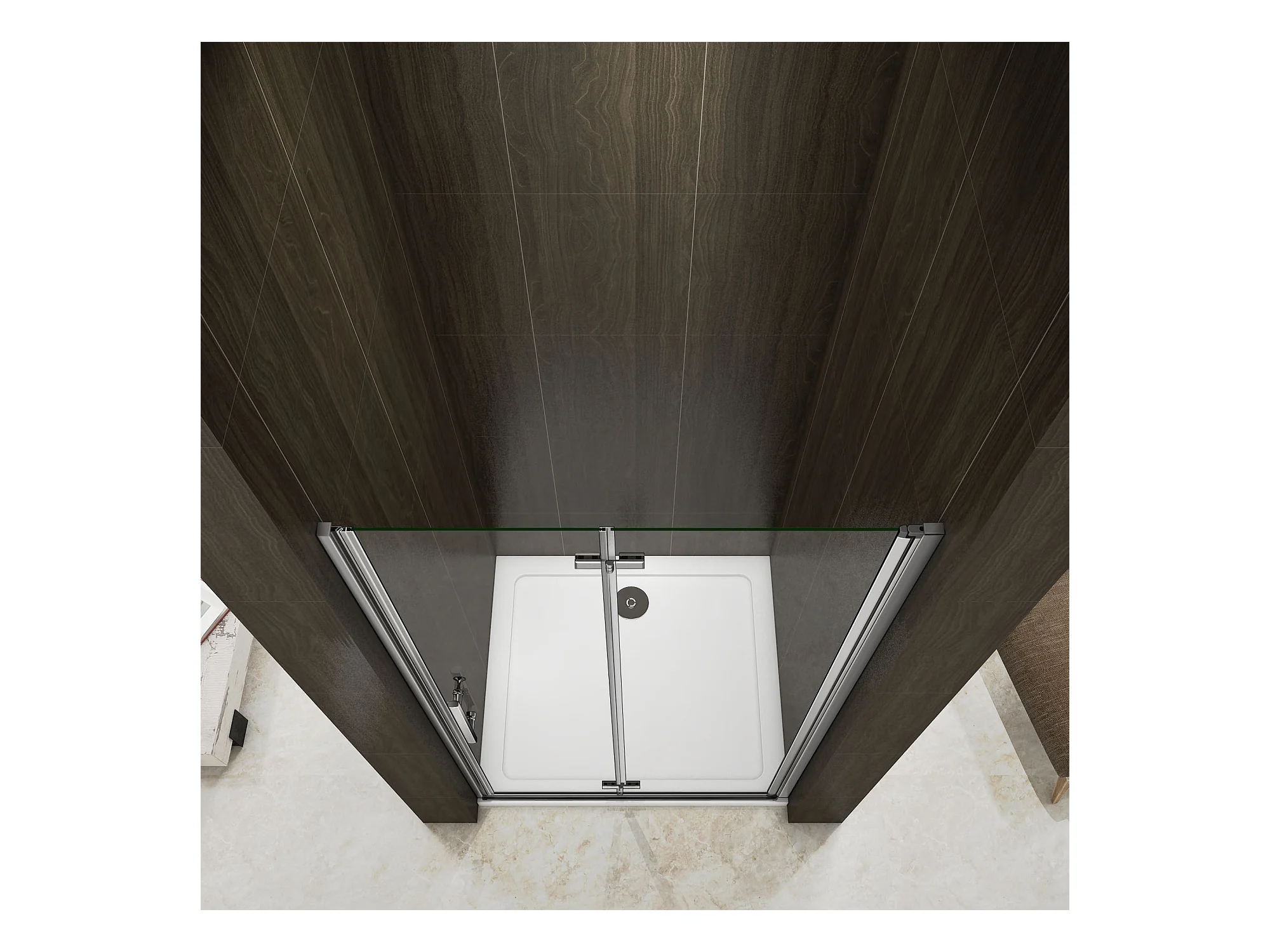 110x185 cm Porta Doccia Per Nicchia Pieghevole-Battente a Libro In Vetro Da 6mm Temperato Trasparente Anticalcare