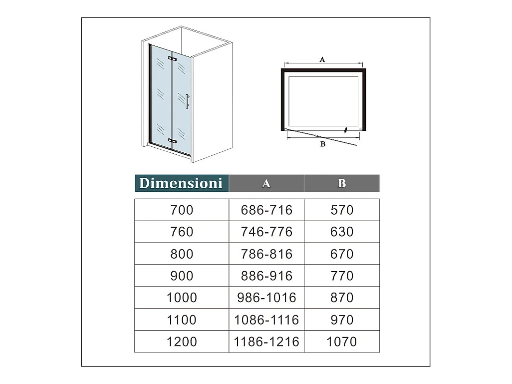 110x197cm Porta Doccia Per Nicchia Doppie Ante Battenti Saloon In Vetro 6mm Temperato Trasparente Anticalcare