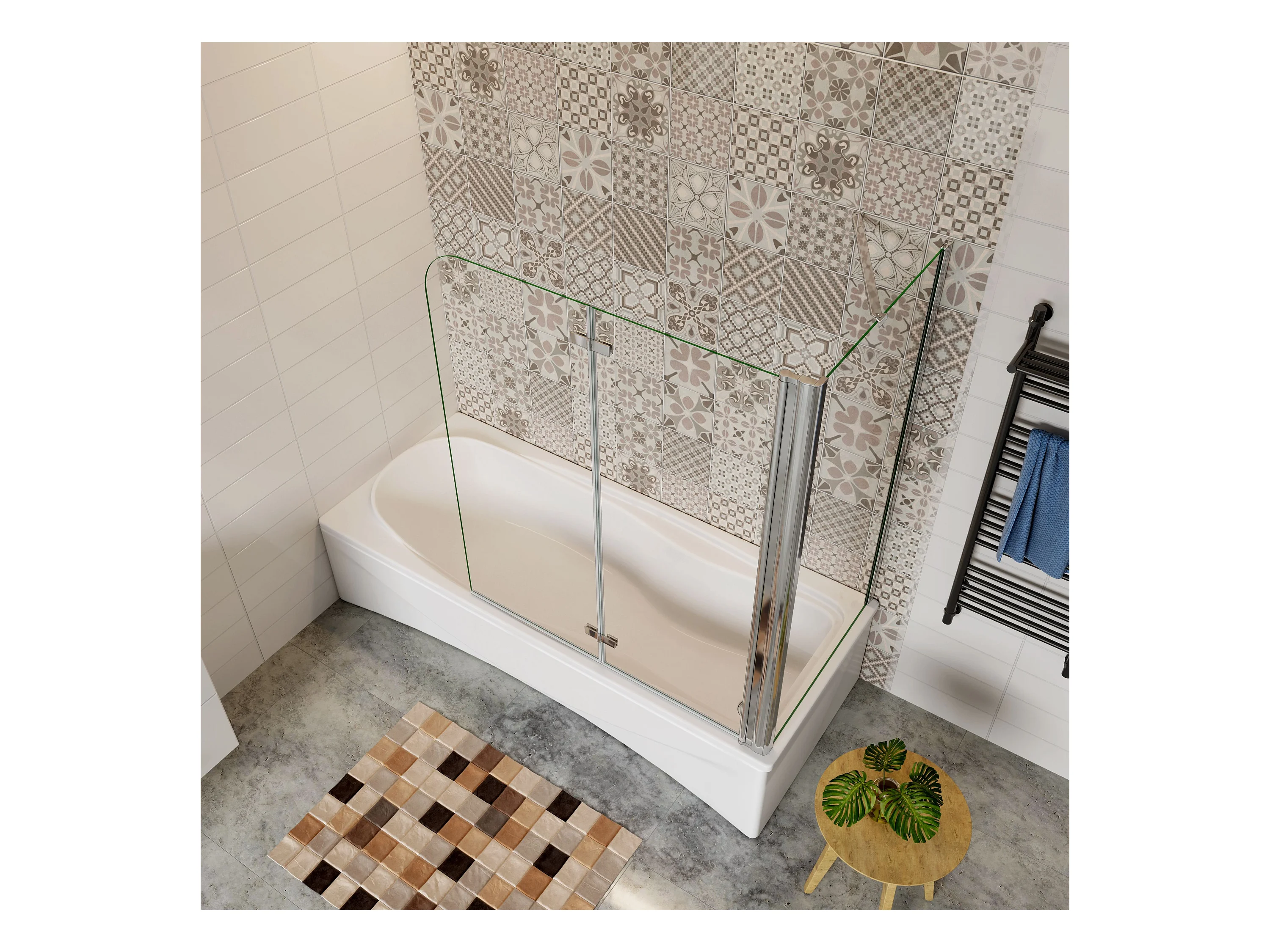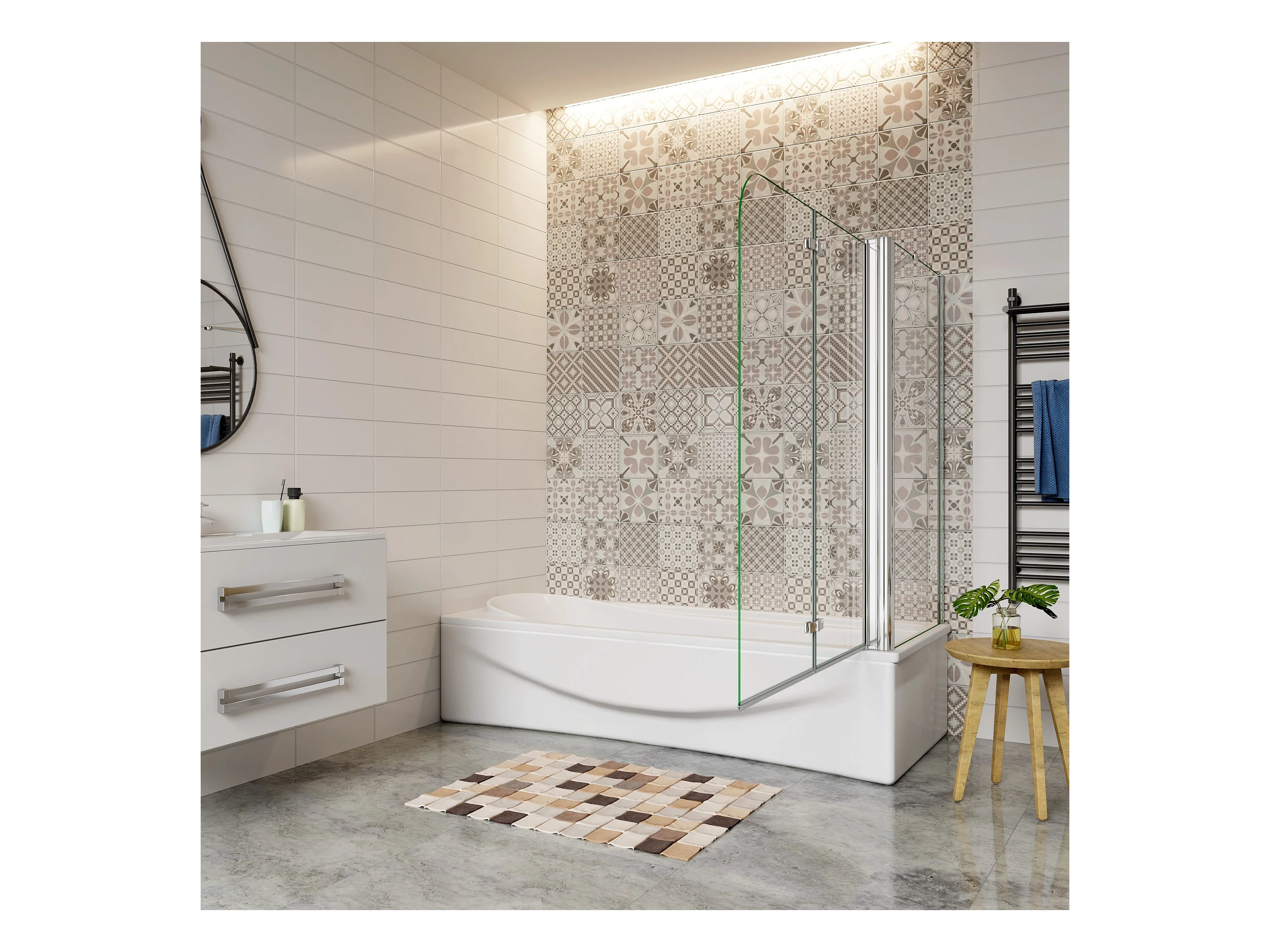 H.140 cm Parete Doccia Per Vasca con Lato Fisso 130x75 cm 3 Ante Pieghevoli a Libro Vetro Temperato 6 mm Trasparente Anticalcare Telaio Cromo Lucido