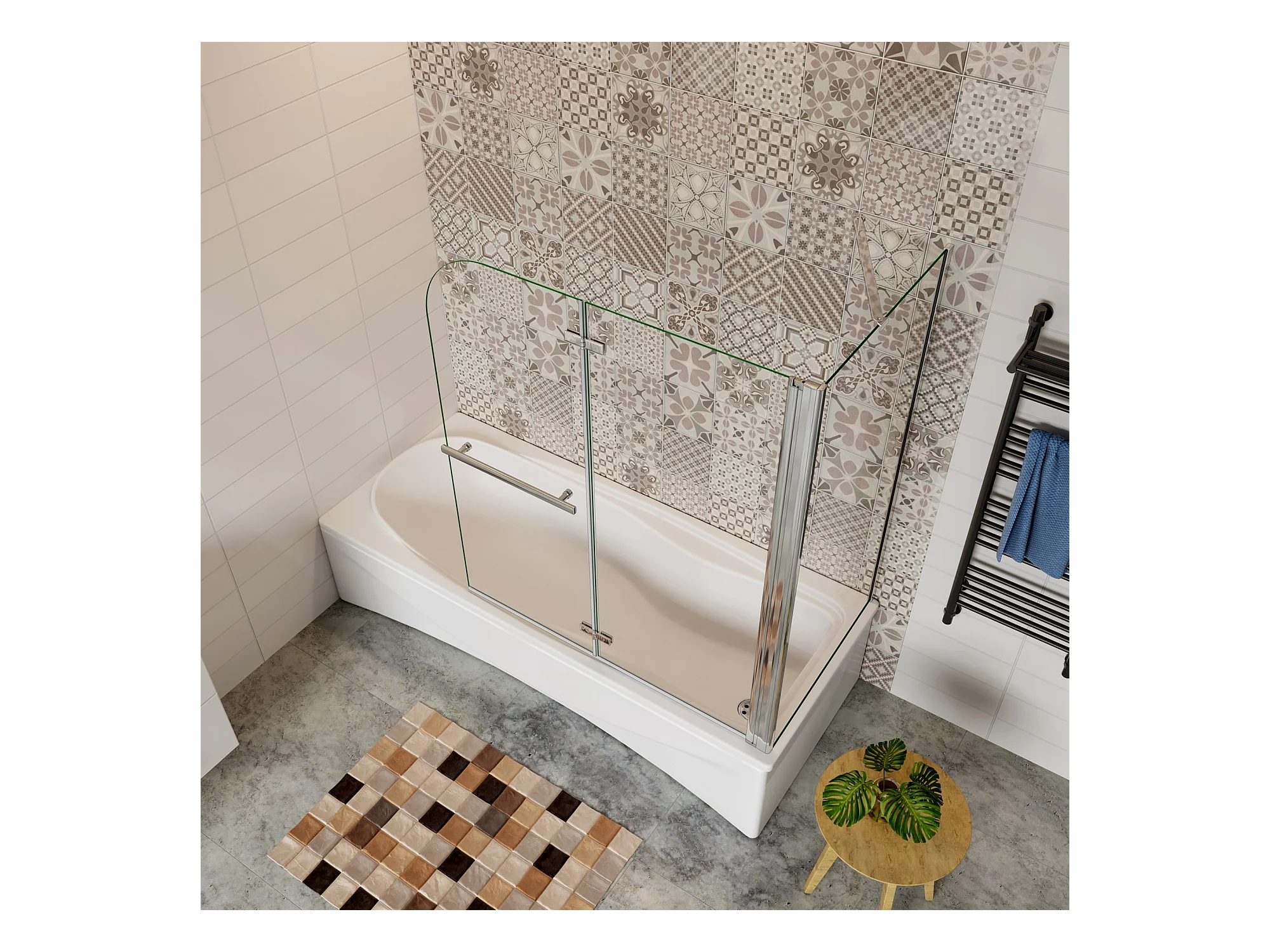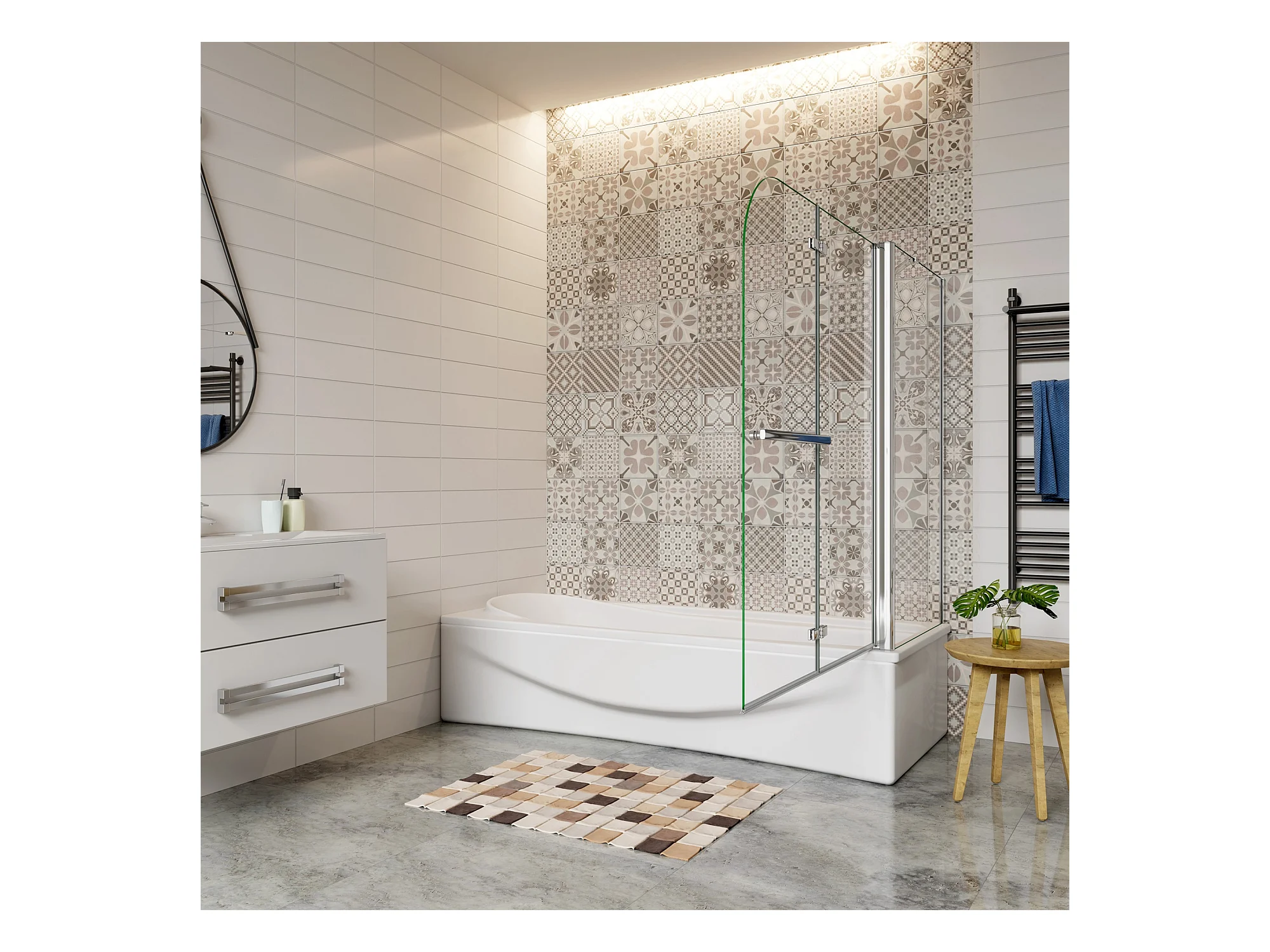 H.140 cm Parete Doccia Per Vasca con Lato Fisso 130x75 cm 3 Ante Pieghevoli a Libro Vetro Temperato 6 mm Trasparente Anticalcare Telaio Cromo Lucido