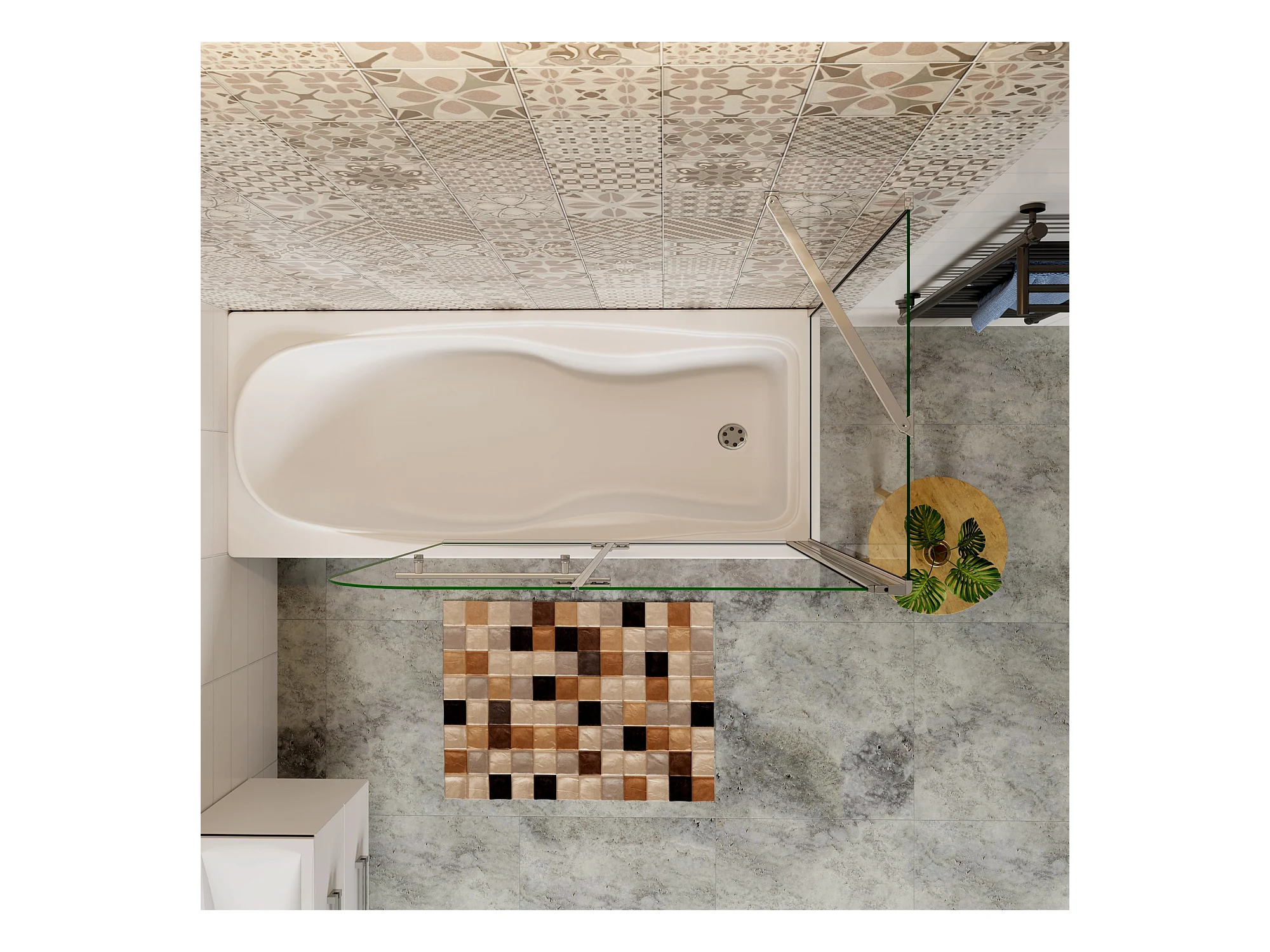 H.140 cm Sopravasca Parete Vasca da Bagno 120 cm Due Ante Movibili con Maniglia Portasciugamani Vetro 6 mm Temperato Anticalcare