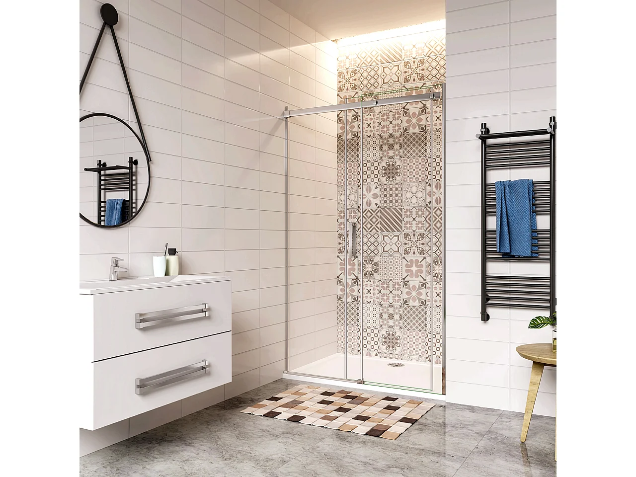 120x195 cm Porta Doccia Per Nicchia Anta Scorrevole Ingresso Laterale in Vetro 8 mm Temperato Trasparente Anticalcare Cromato Lucido