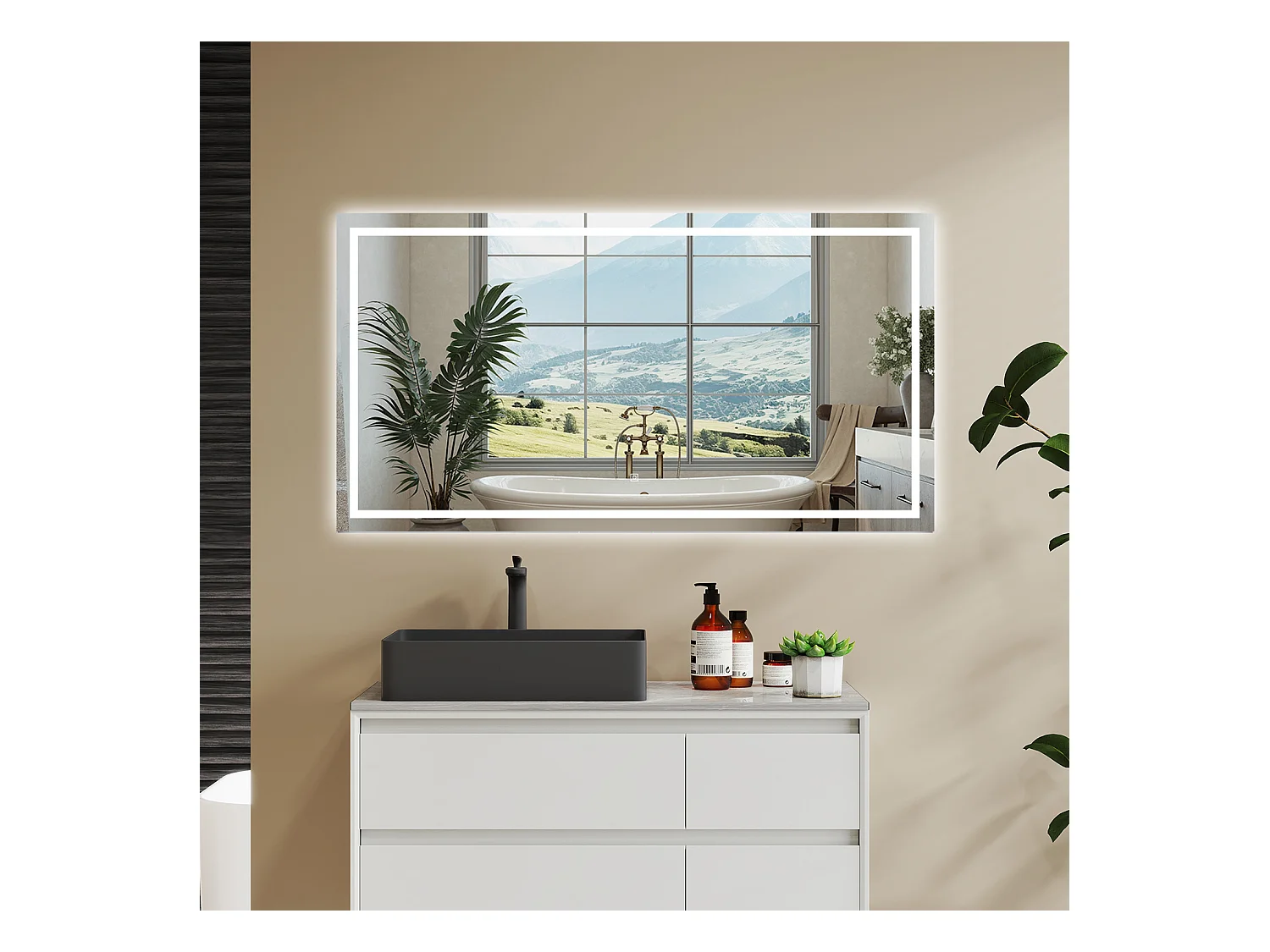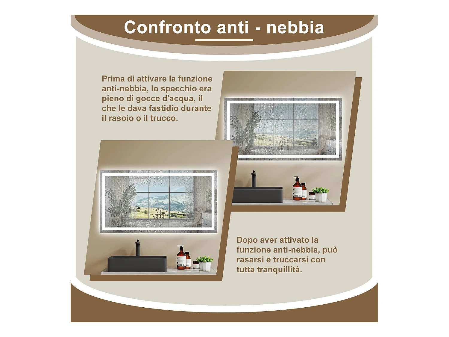 Specchio da bagno Rettangolare con 120x80cm,3 colori,Memoria, Antifog,Regorabile,Retroilluminato,doppio interruttore,