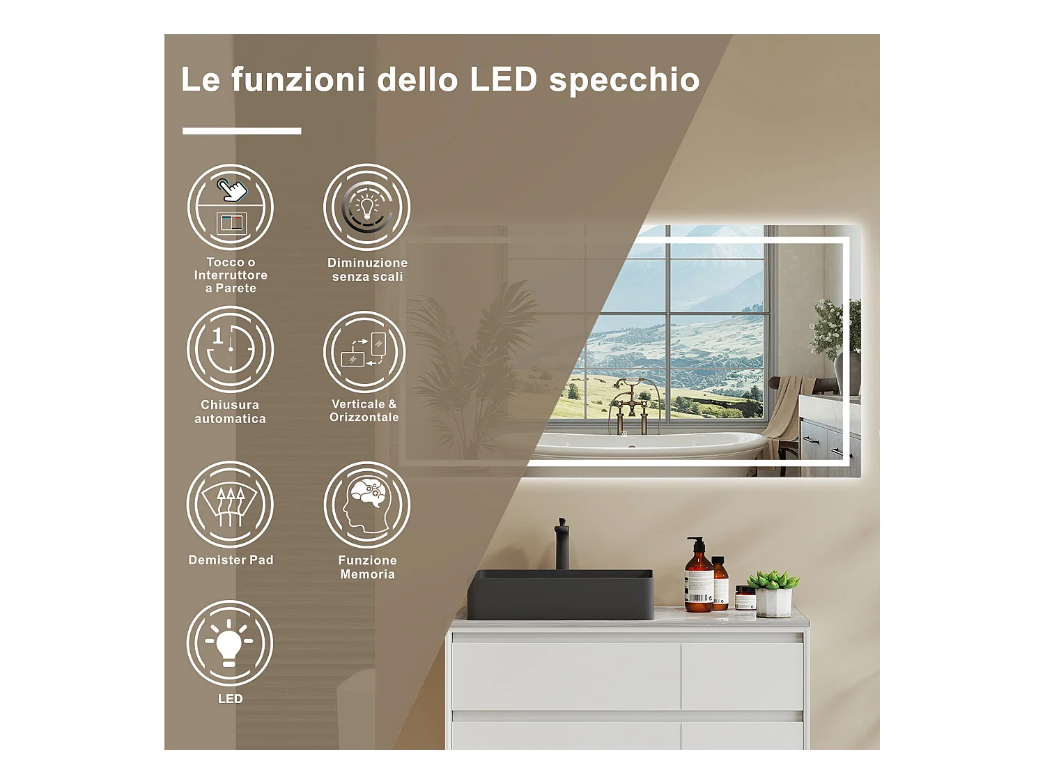 Aica Specchio da bagno a LED, 120x80cm, Disappannamento, Infinitamente Dimmerabile, Funzione Memoria