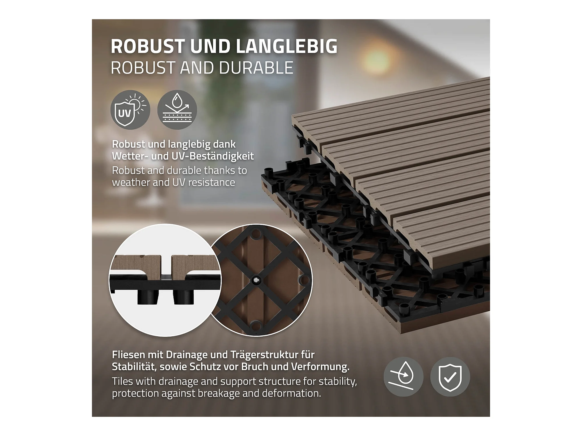 12x Piastrelle WPC da esterno pavimento 60 x 30 cm giardino marrone scuro 2 m²