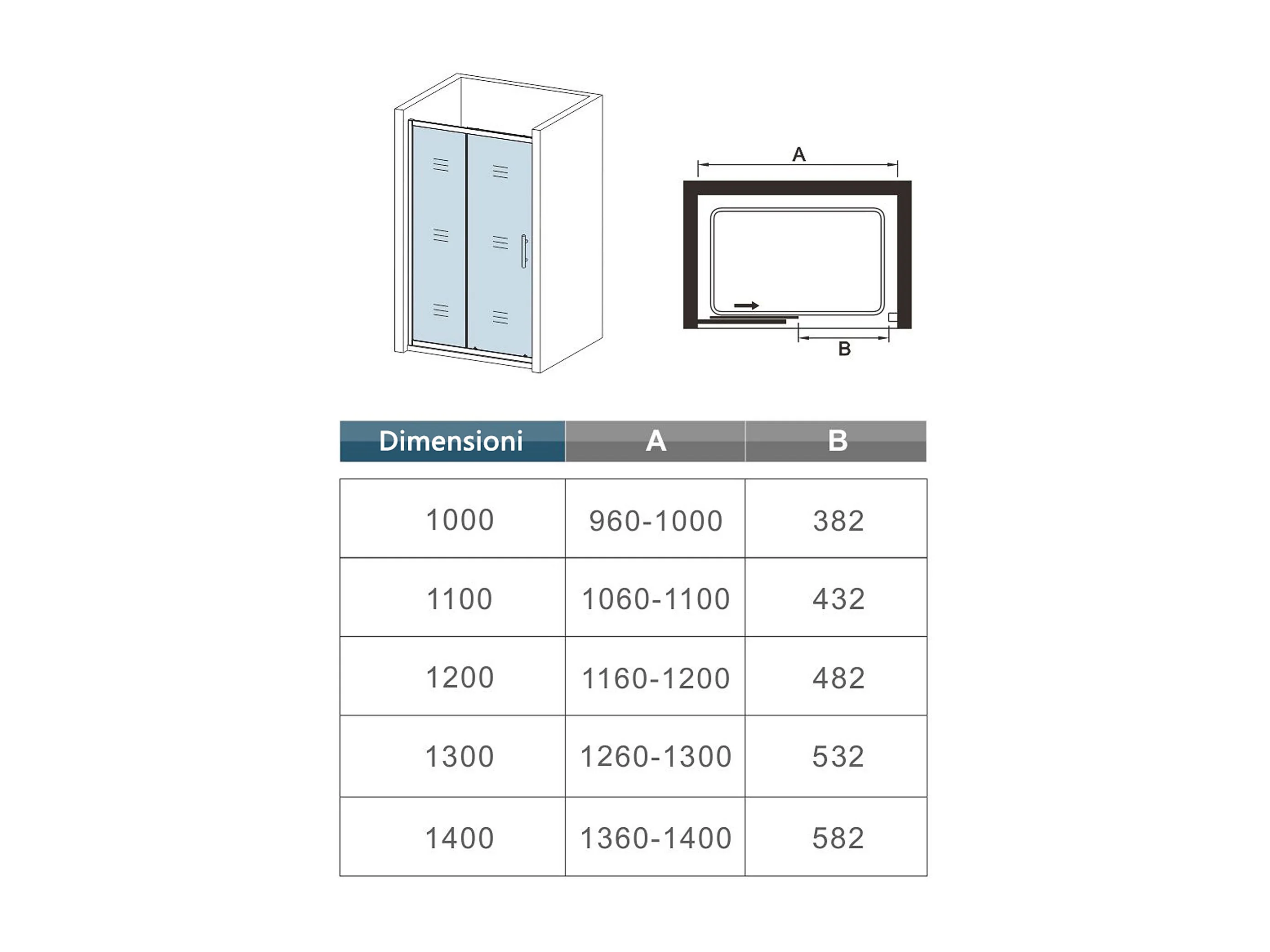 140x185 cm Box Doccia Per Nicchia Porta Scorrevole Ingresso Laterale in Vetro 5 mm Temperato Trasparente Profilo Nero Opaco