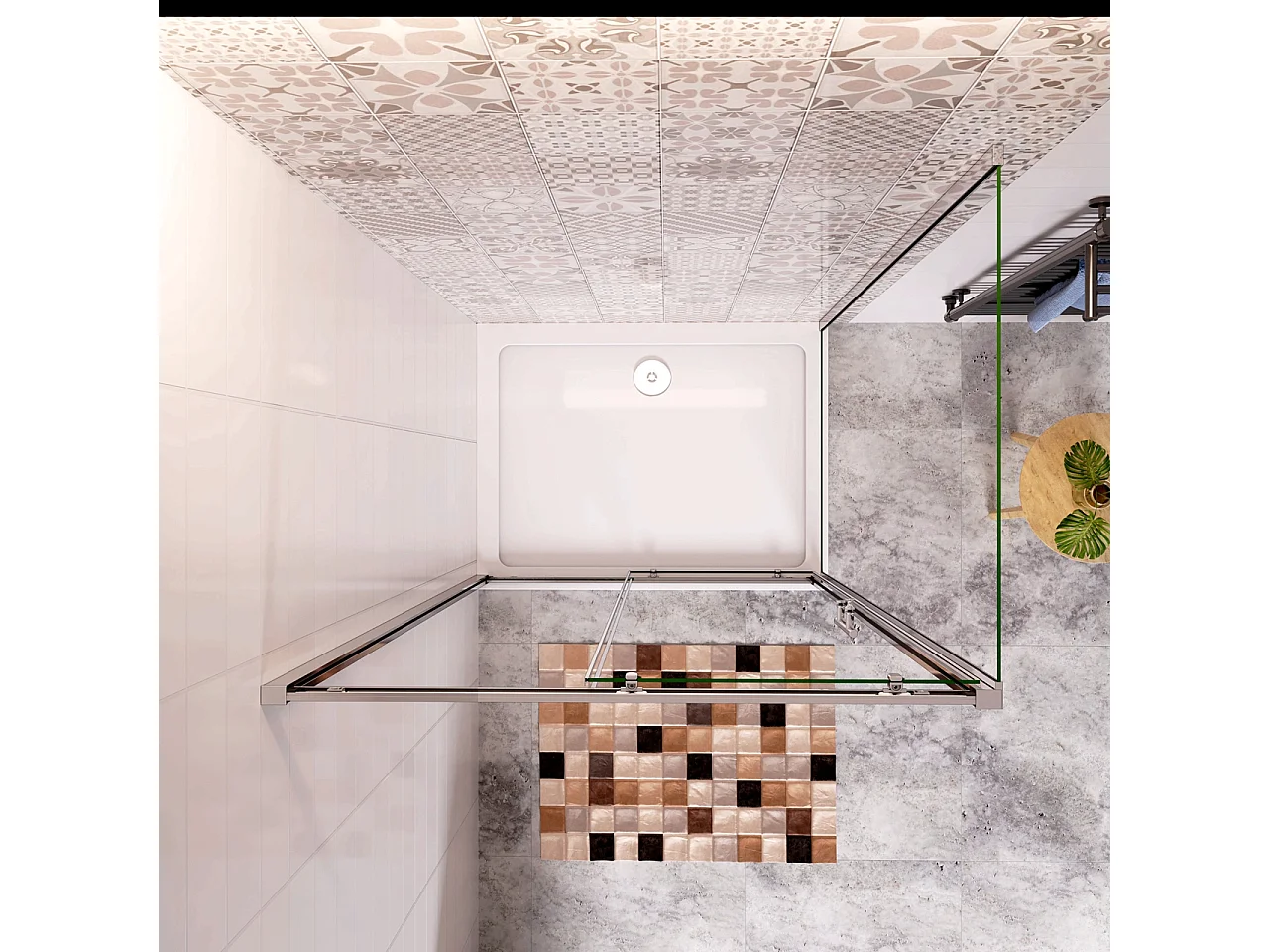 185 cm Box Doccia Angolare Porta Scorrevole con Parete Fissa Vetro Temperato 5 mm Trasparente Telaio Cromato Lucido 140x70 cm
