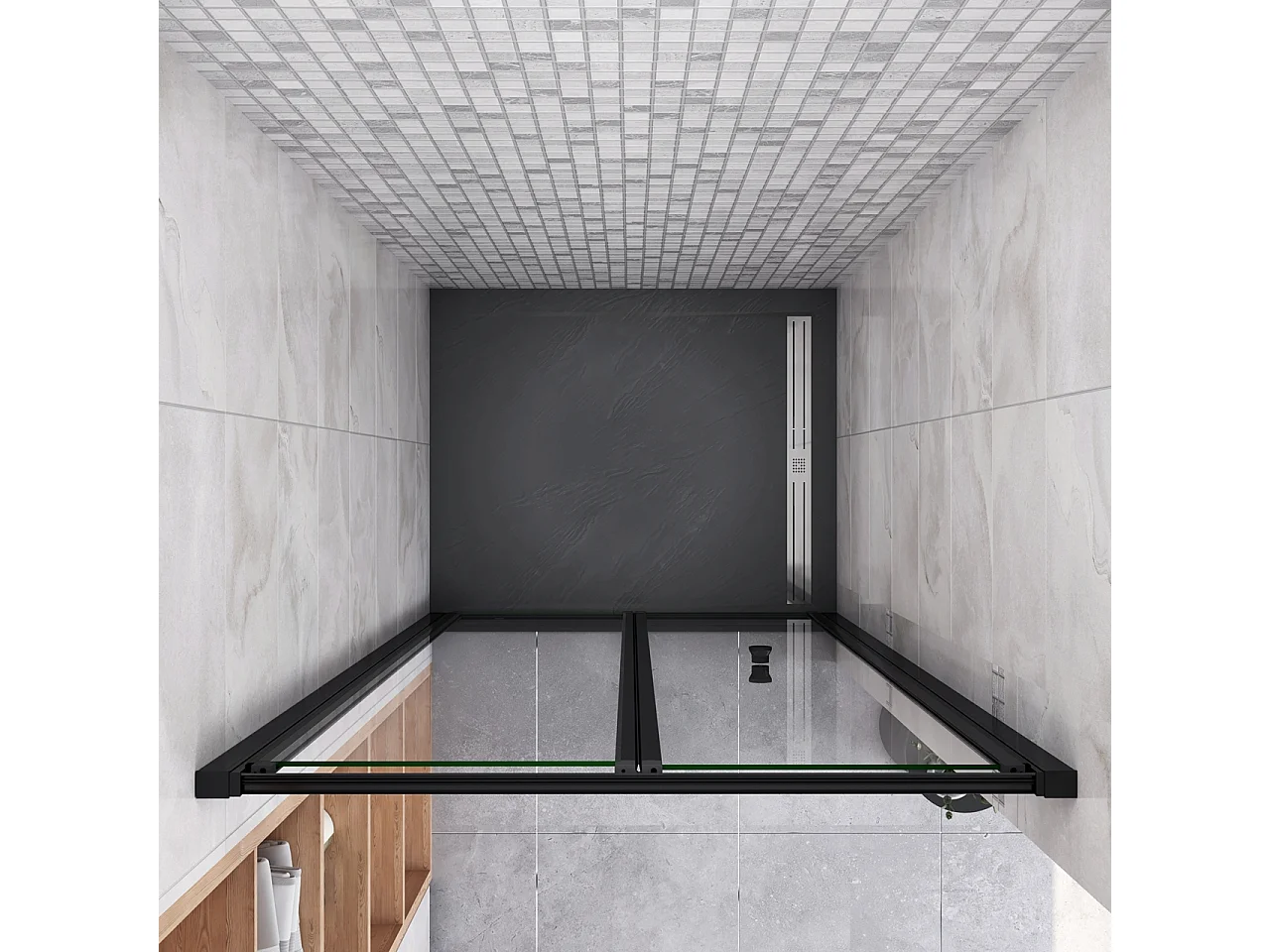 185 cm Box Doccia per Nicchia Porta a Soffietto Vetro Temperato 5 mm Trasparente Profilo Nero Opaco 96 cm