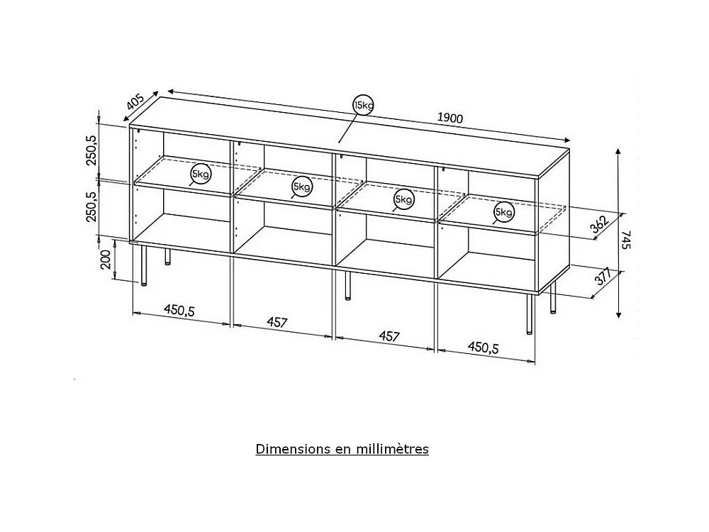 Buffet design con 3 porte e 1 nicchia di stoccaggio Baltik - L144 cm