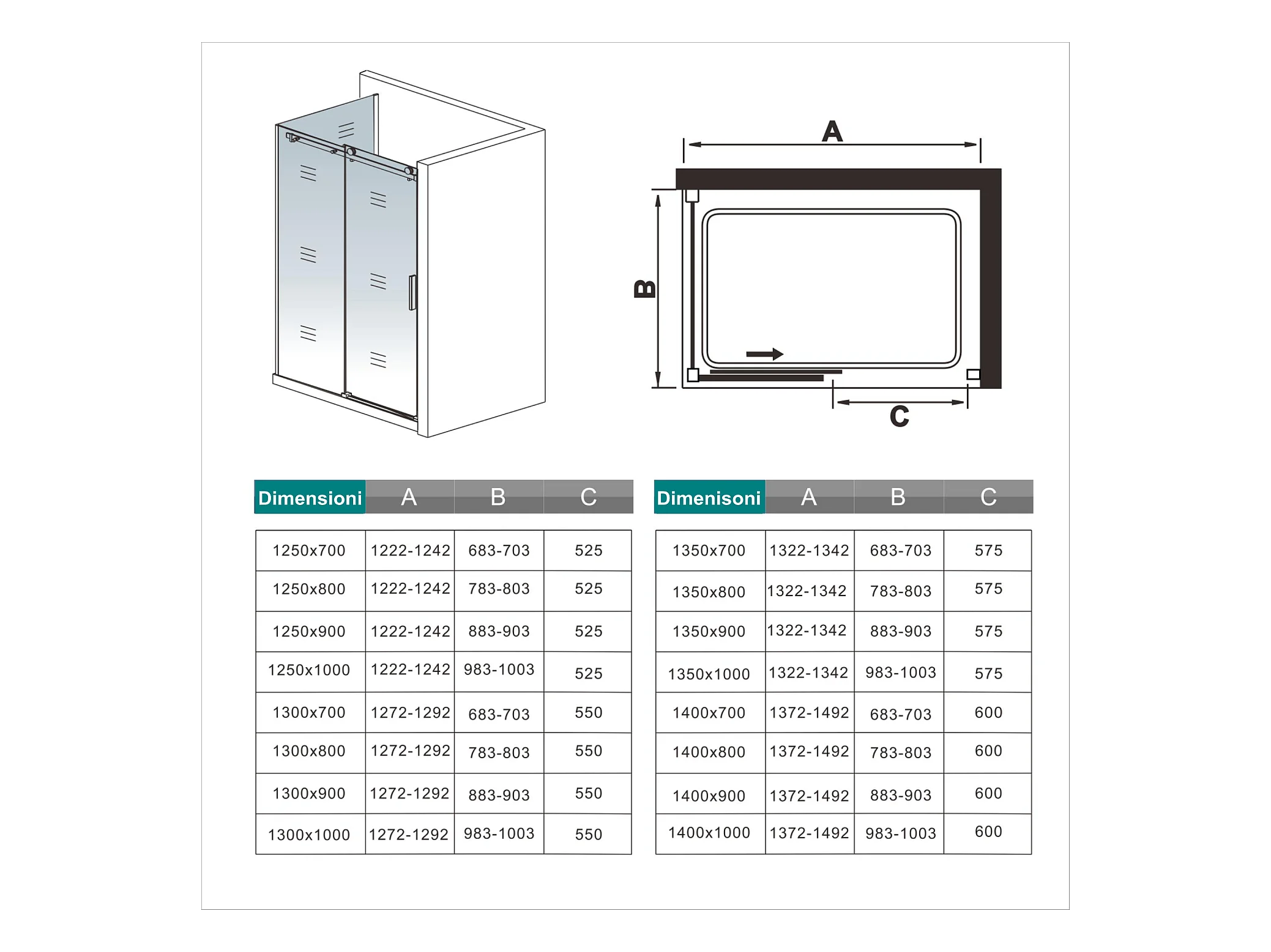 Doccia 120 x 190 cm (1 piazza e mezza)