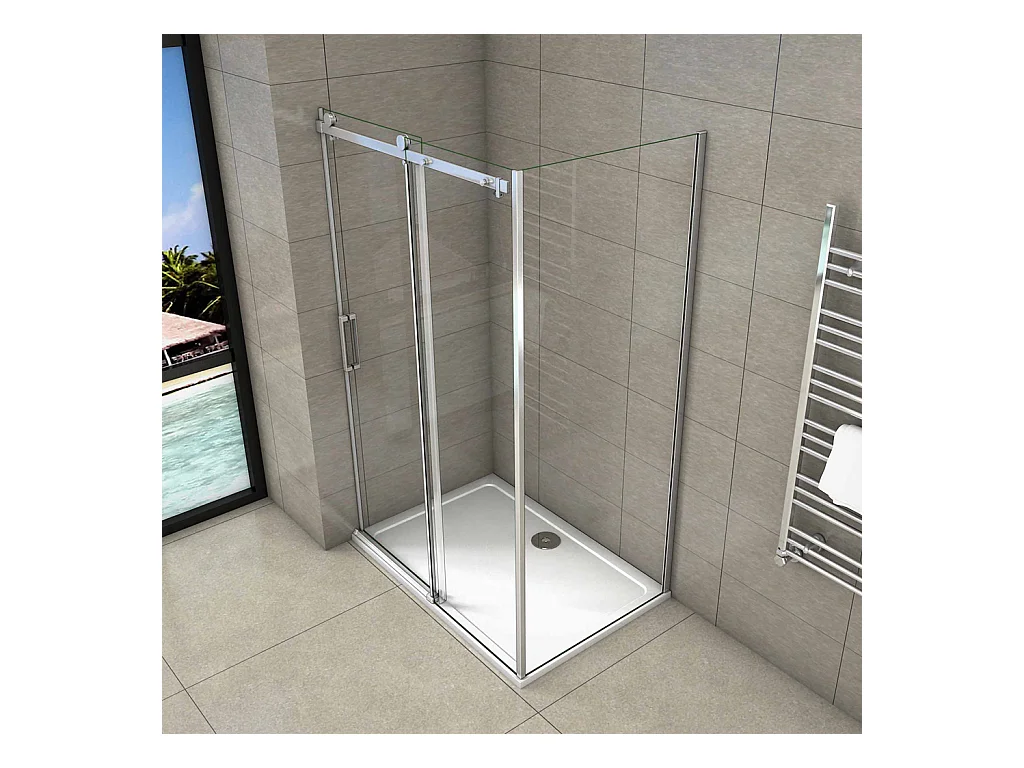 Aica Italy 115x80cm H.195 cm Box Doccia Angolare Porta Scorrevole Con Parete Laterale Vetro 8 Mm Temperato Anticalcare Trasparente Cromato Lucido