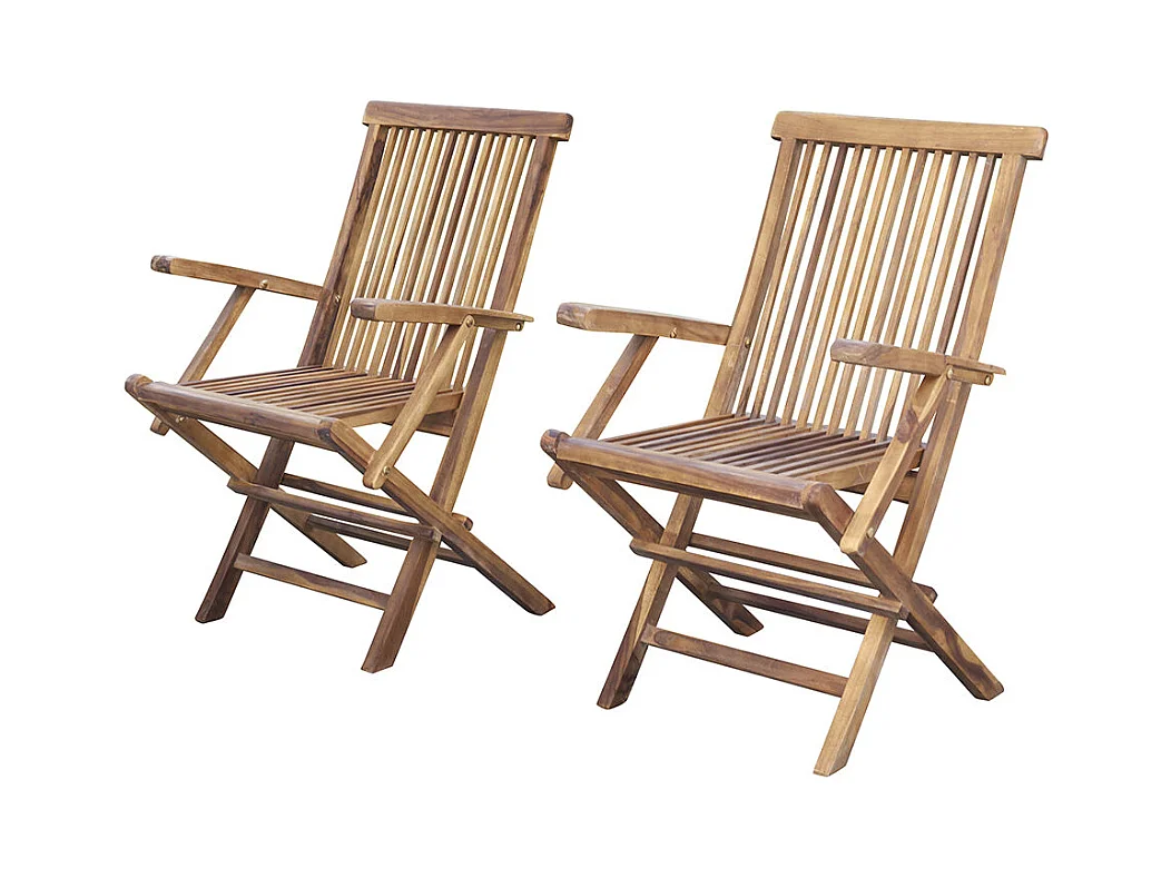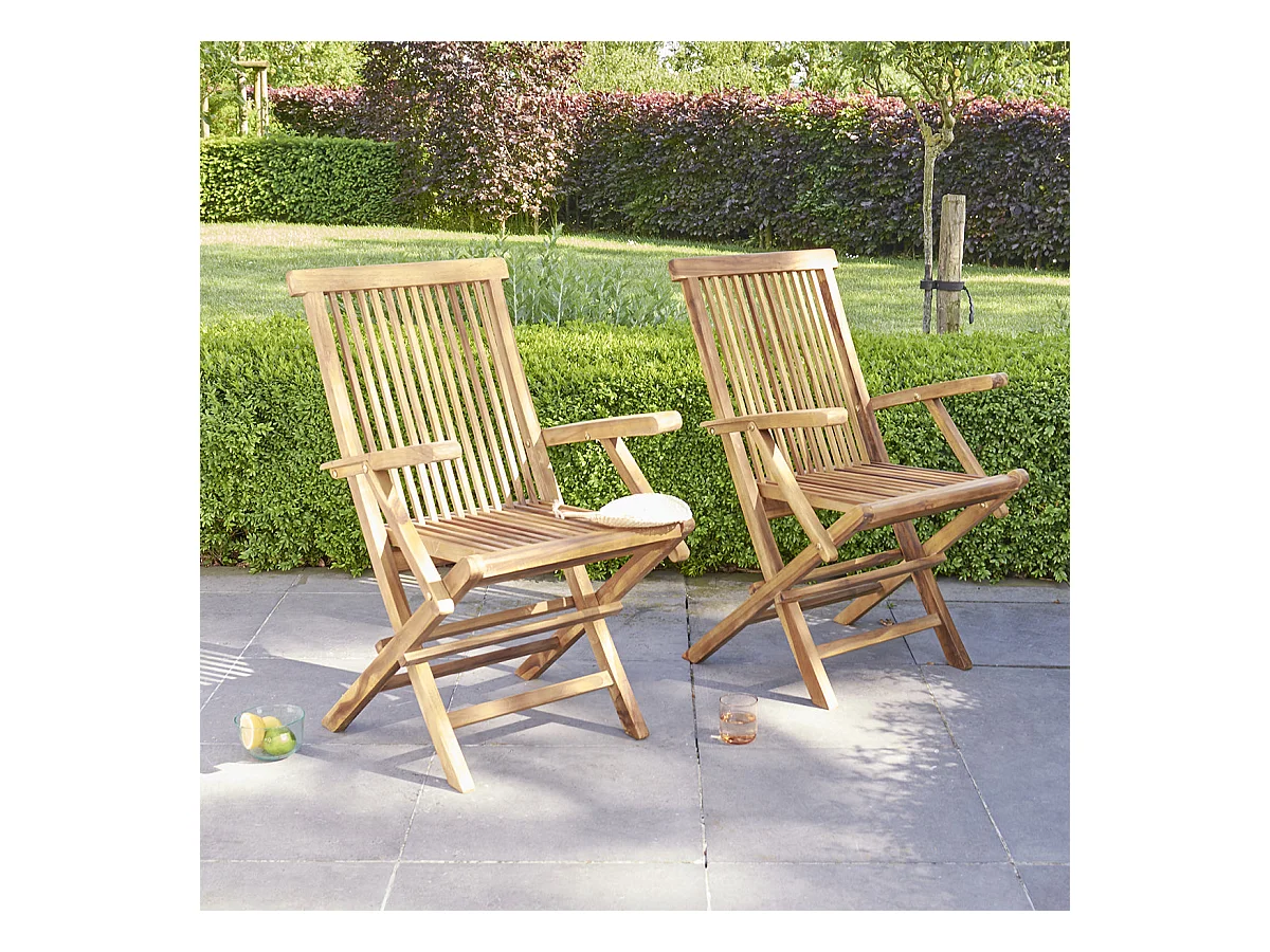 Set di 2 sedie da giardino pieghevoli in legno massello di teak