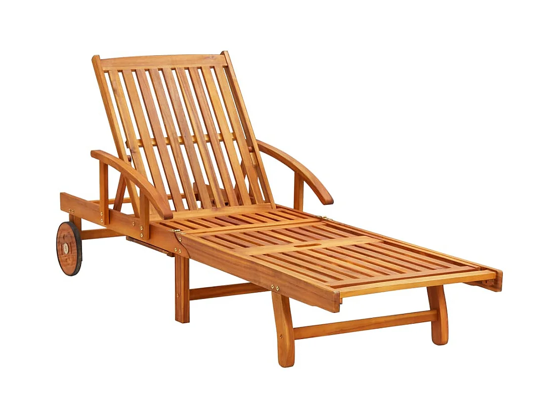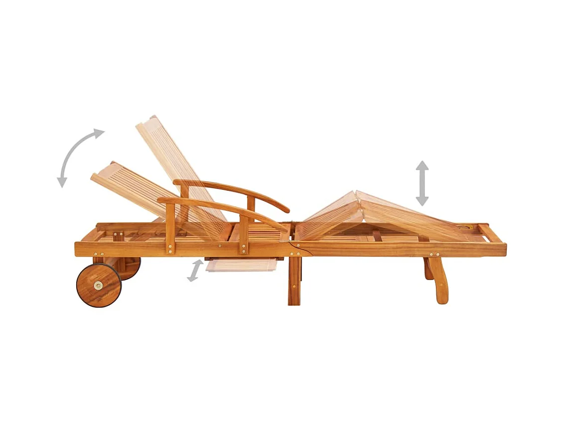 2 sedie a sdraio con tavolo e cuscini in massello di acacia