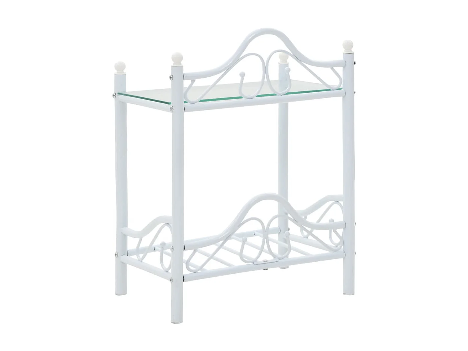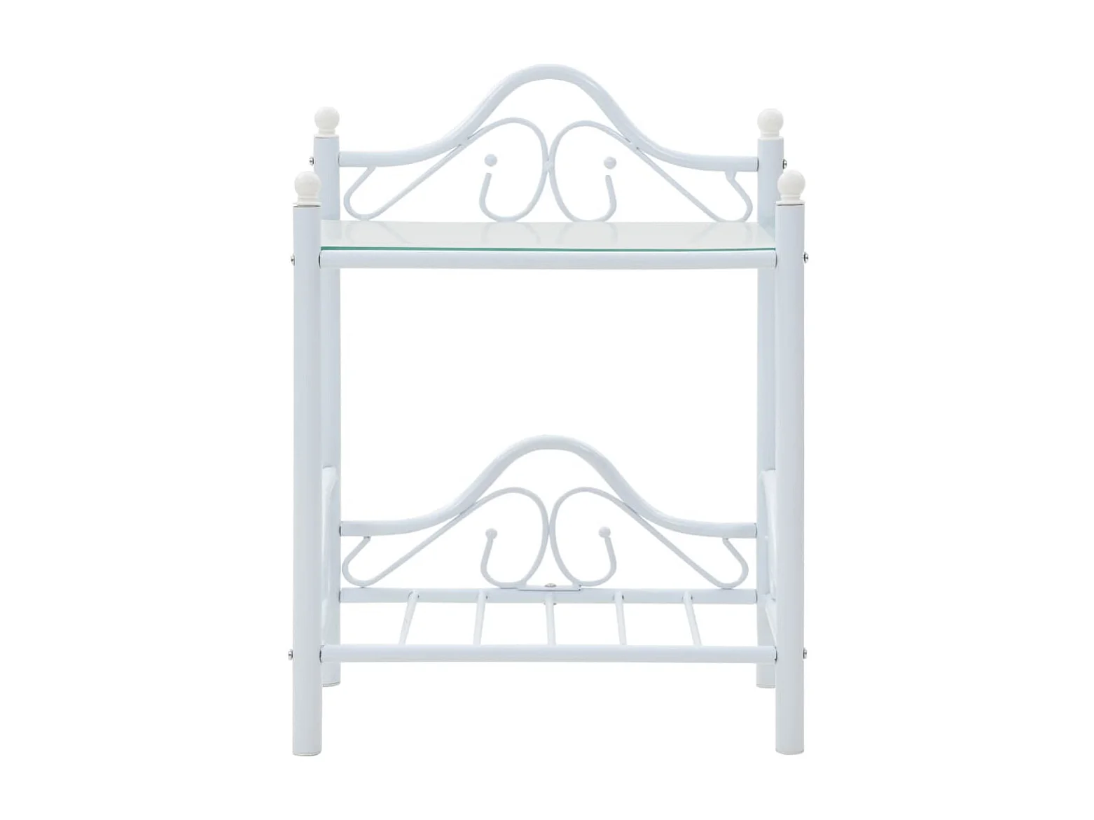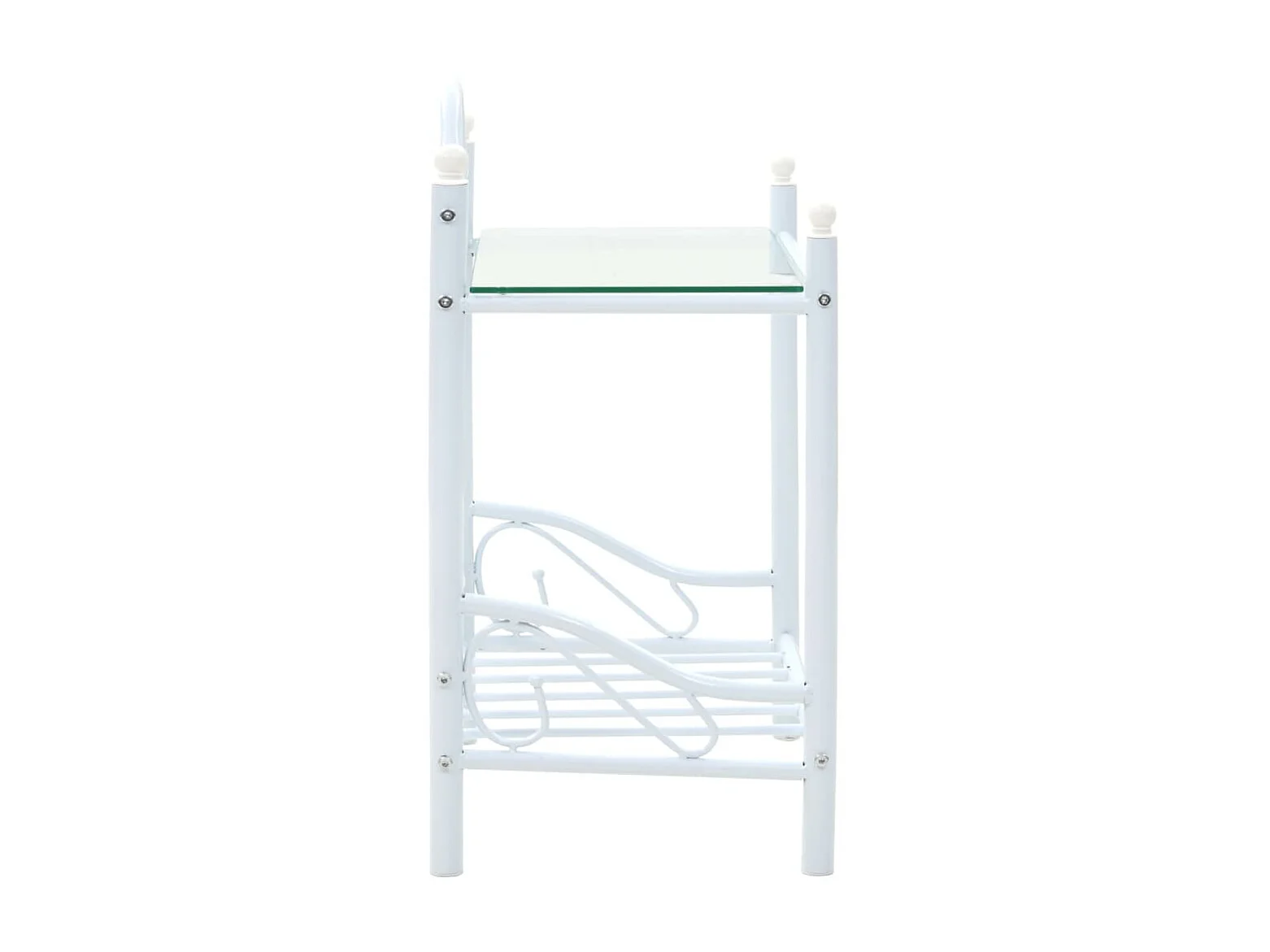 2 pz Comodini Set Acciaio e Vetro Temperato 45x30,5x60cm Bianco CFW962238