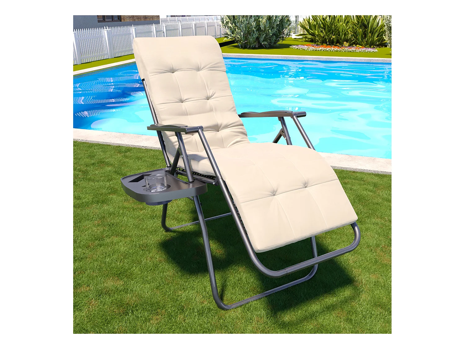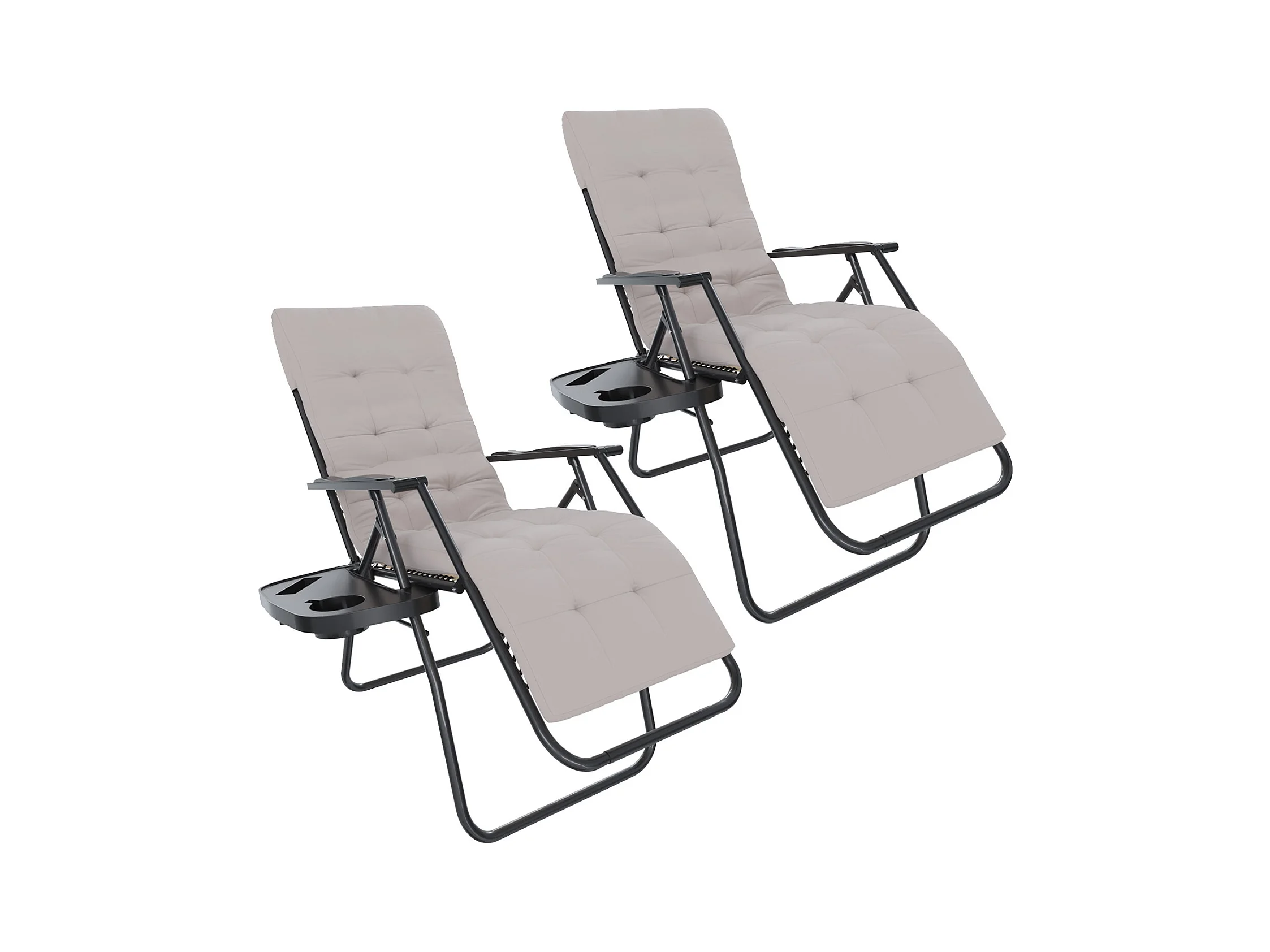 2 Sedie Sdraio Con Cuscino Imbottito E Portavivande Poltrona Relax Reclinabile Gravità 0 Design Ergonomico Richiudibile In Acciaio Portata Max 120 Kg