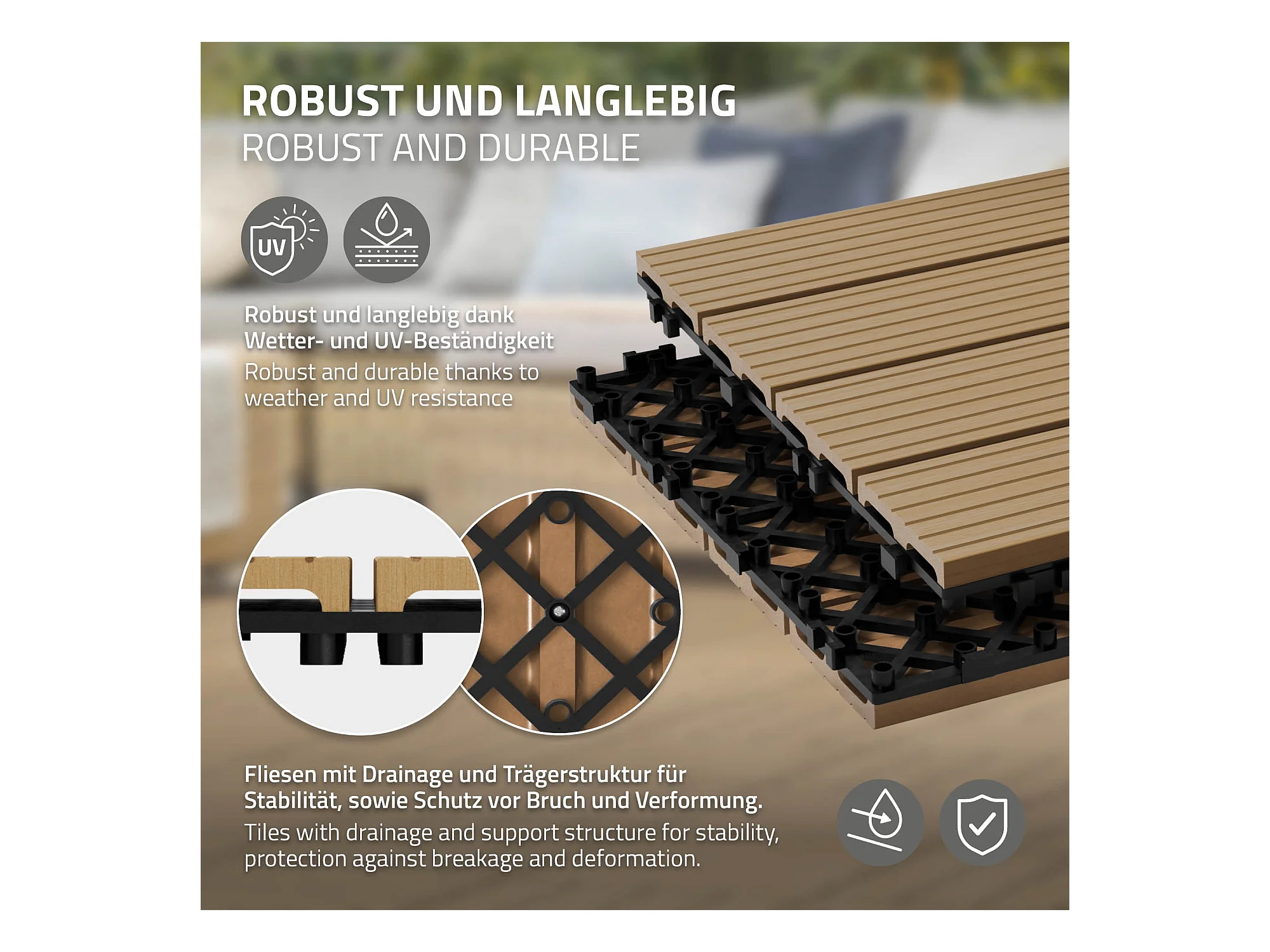 22x Piastrelle da giardino in WPC per piscina mosaico 30x30cm marrone chiaro 2m²