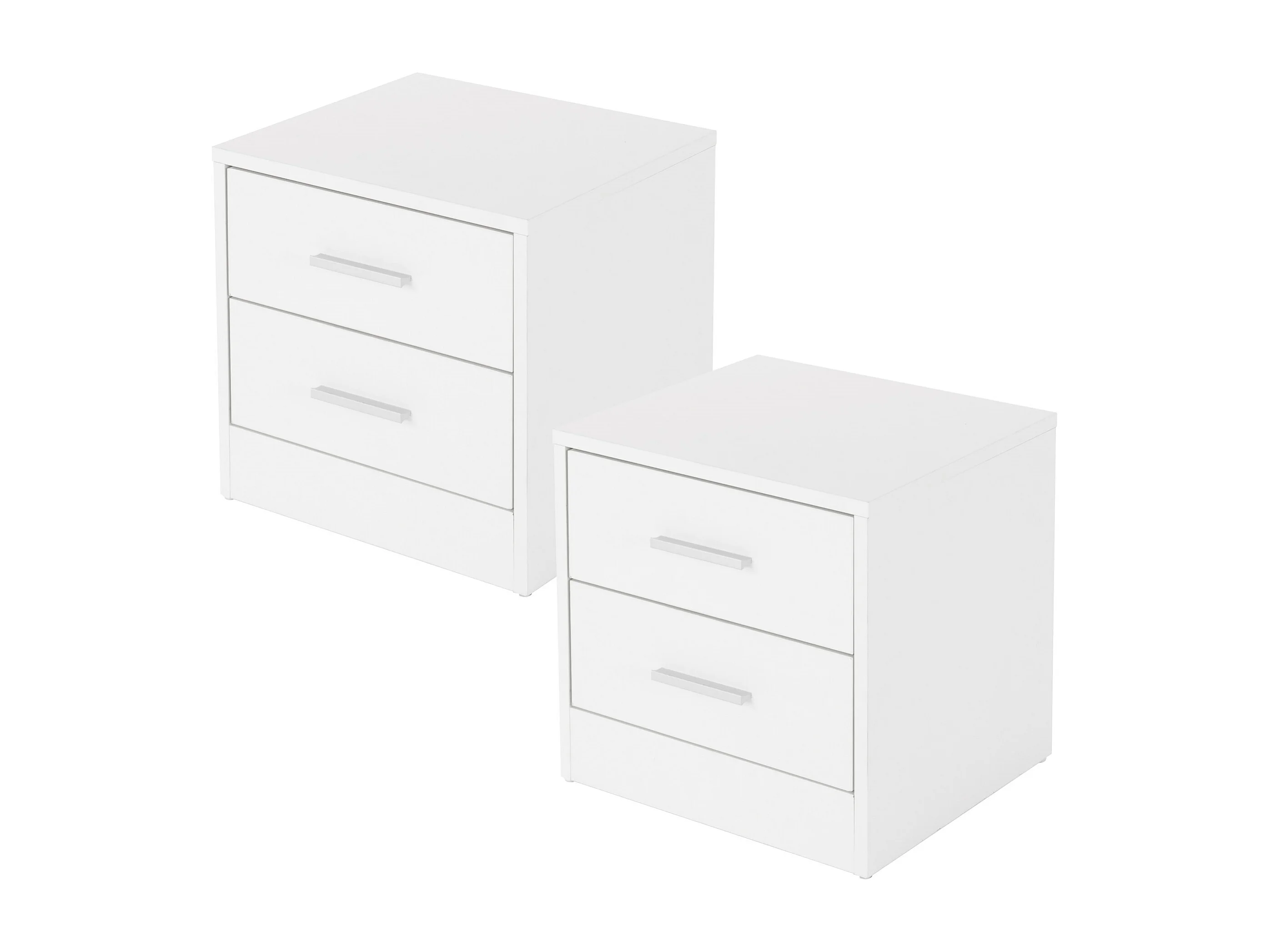 2x Comodini camera da letto con 2 cassetti comò notte cassettiera legno bianco