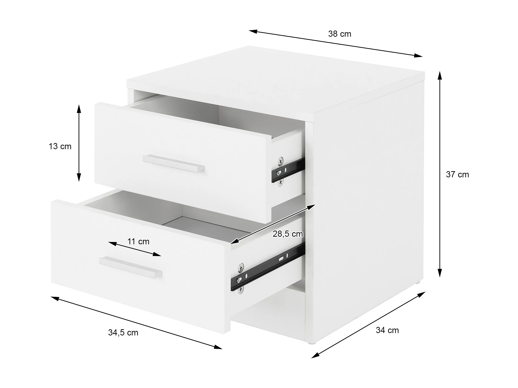 Comodino tavolo da notte 2 cassetti frontali camera da letto 38x37x34 cm bianco