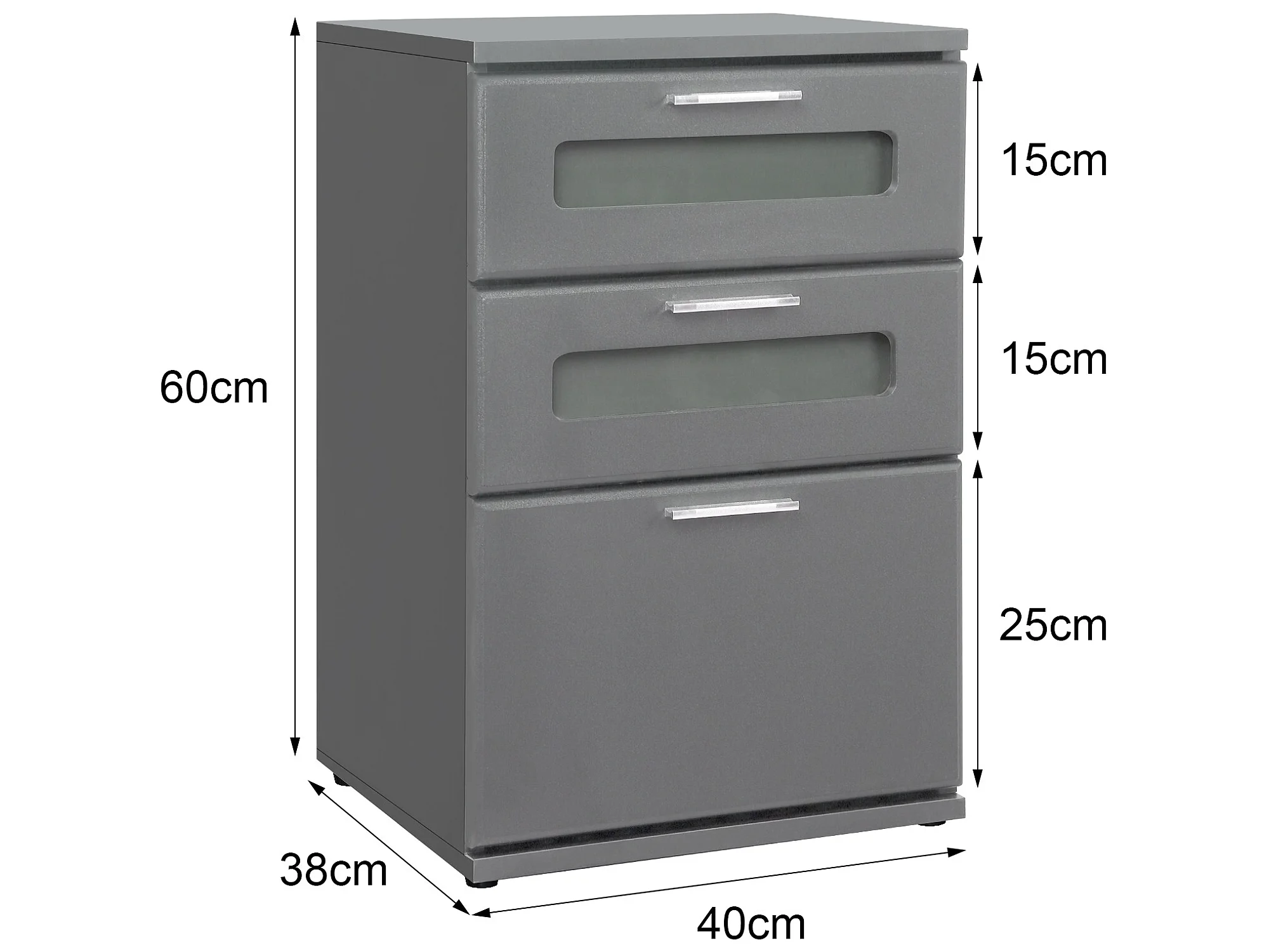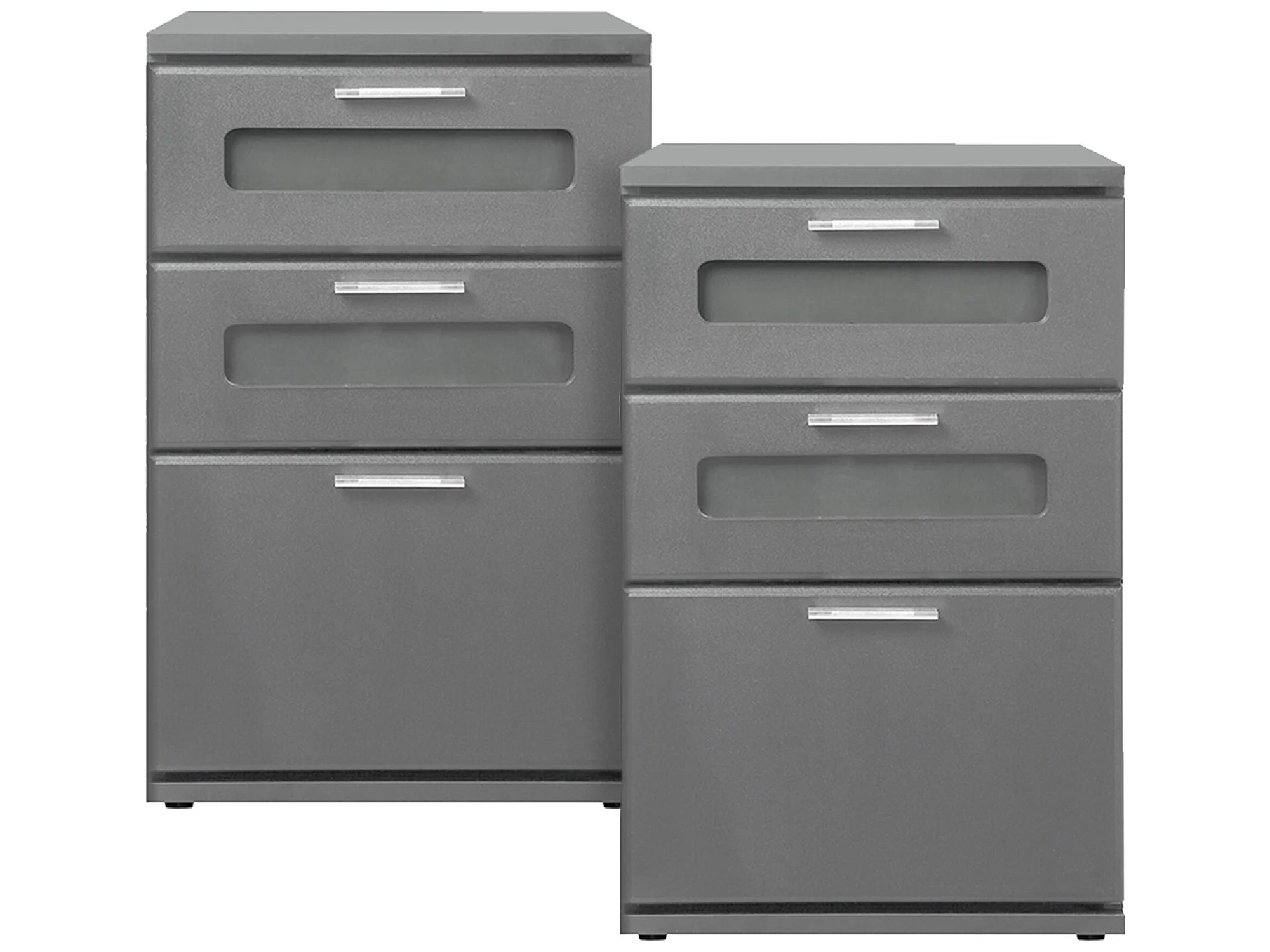 2x Comodino con 3 cassetti e 2 inserti in vetro grigio MDF ML-DESIGN