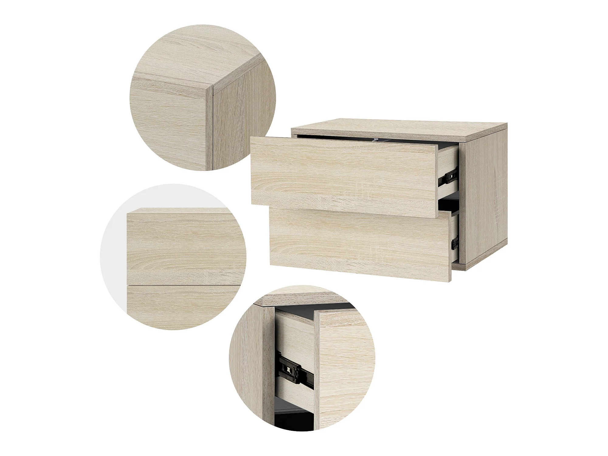2x Comodino sospeso 2 cassetti comodino comodino rovere ML-DESIGN