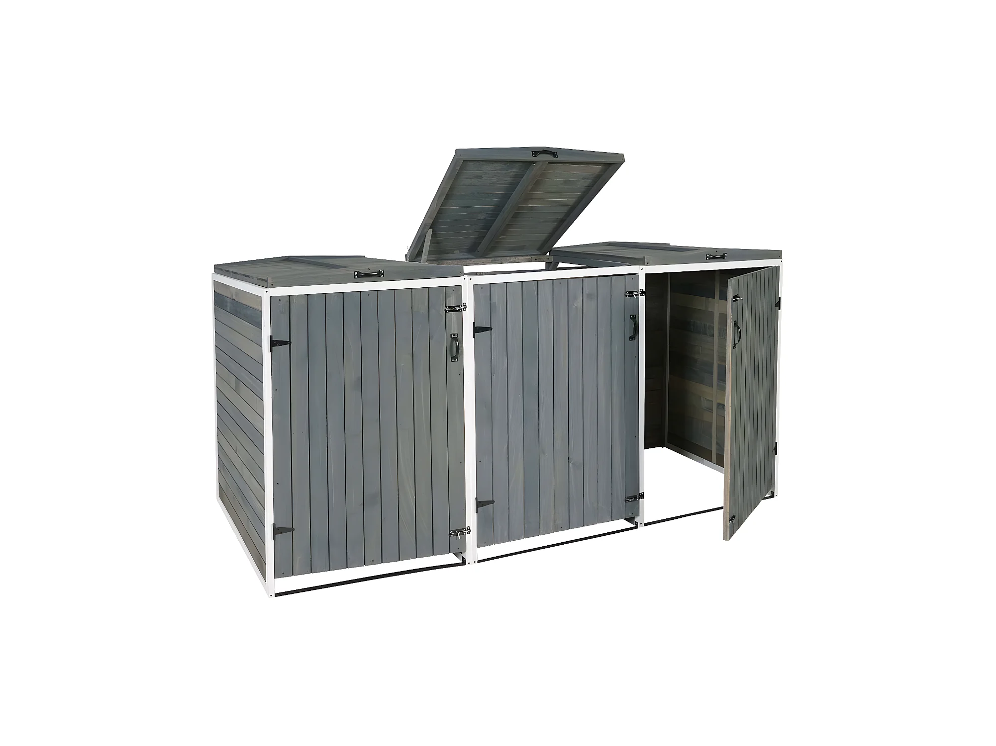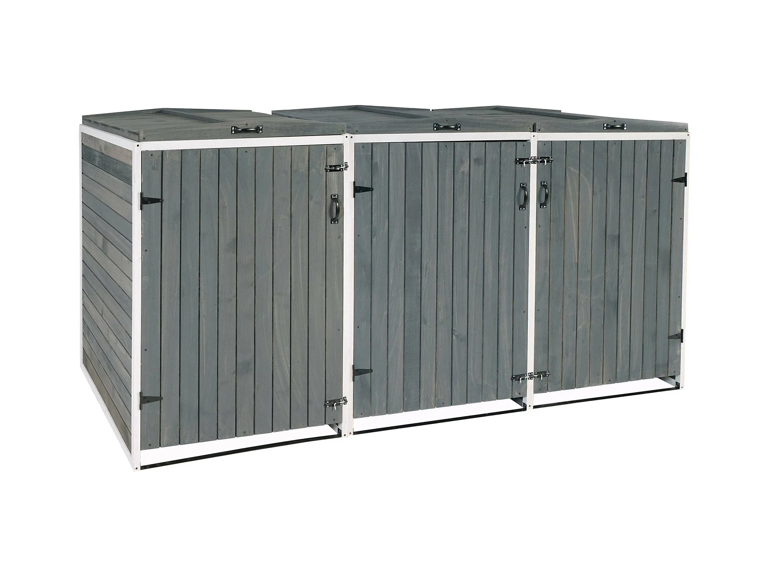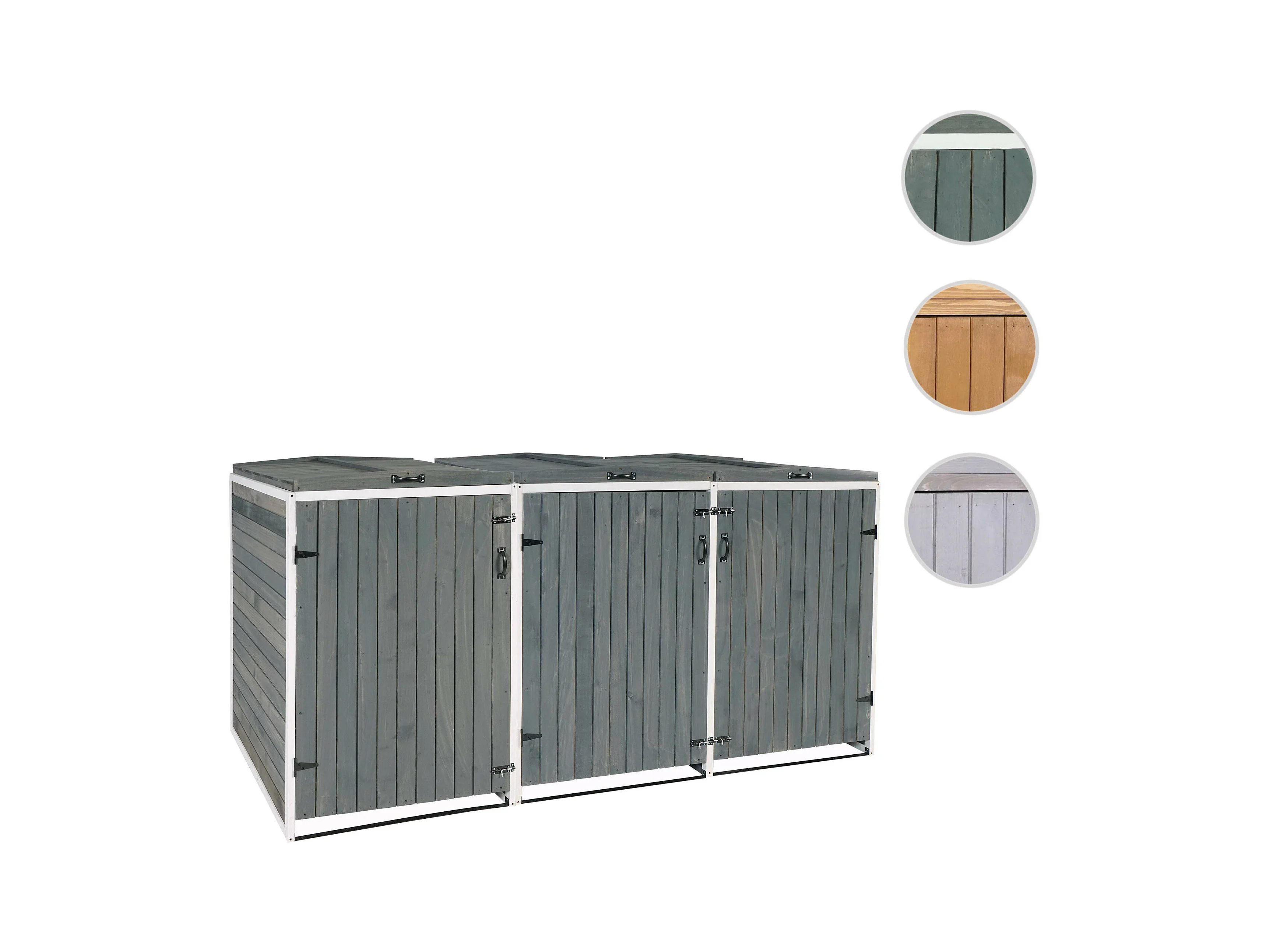 3x copribidoni box spazzatura rifiuti MCW-H74 98x238x126cm legno abete grigio bianco