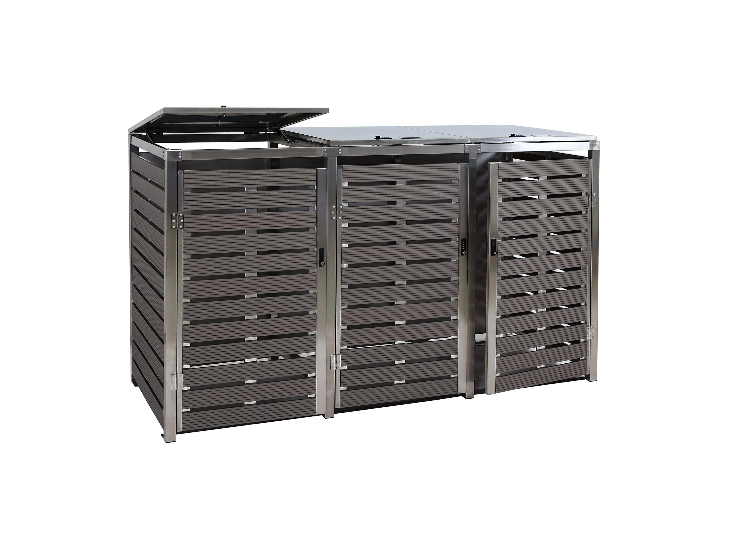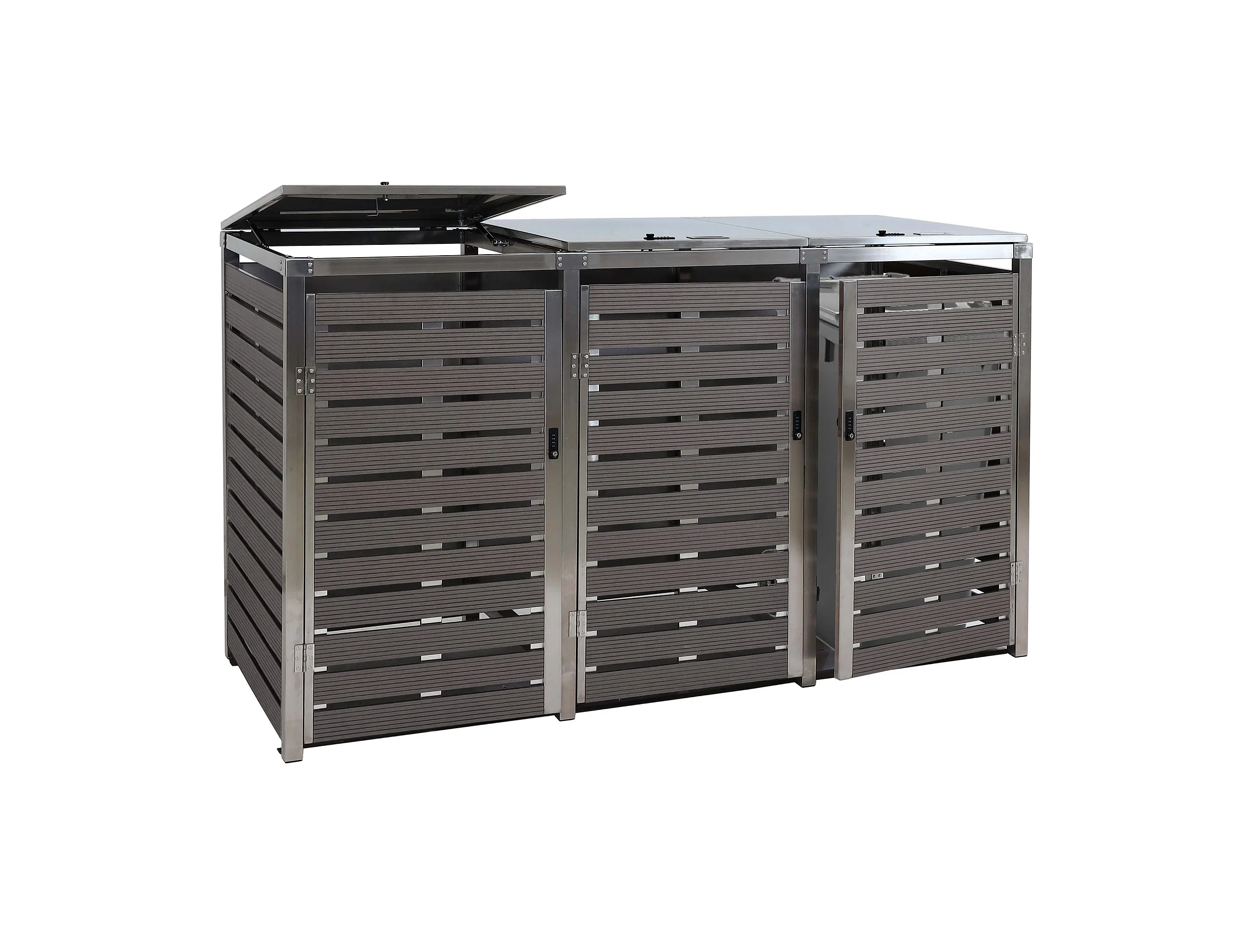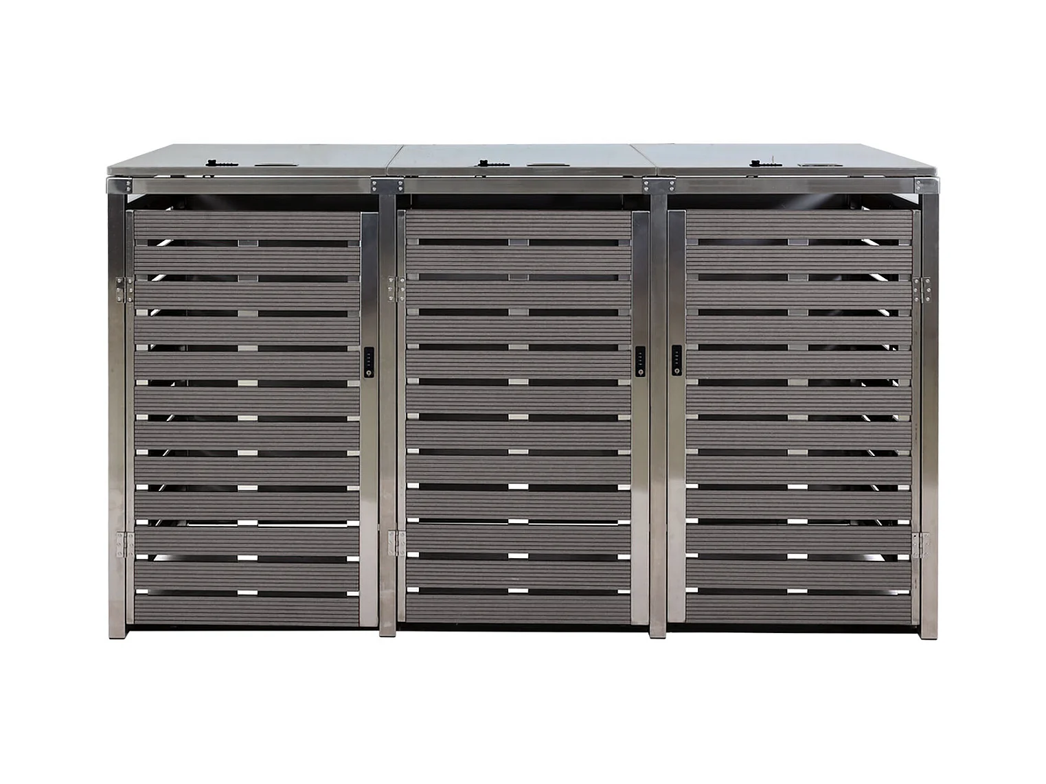 3x copribidoni box spazzatura rifiuti MCW-K14 85x200x120cm acciaio inox WPC antracite