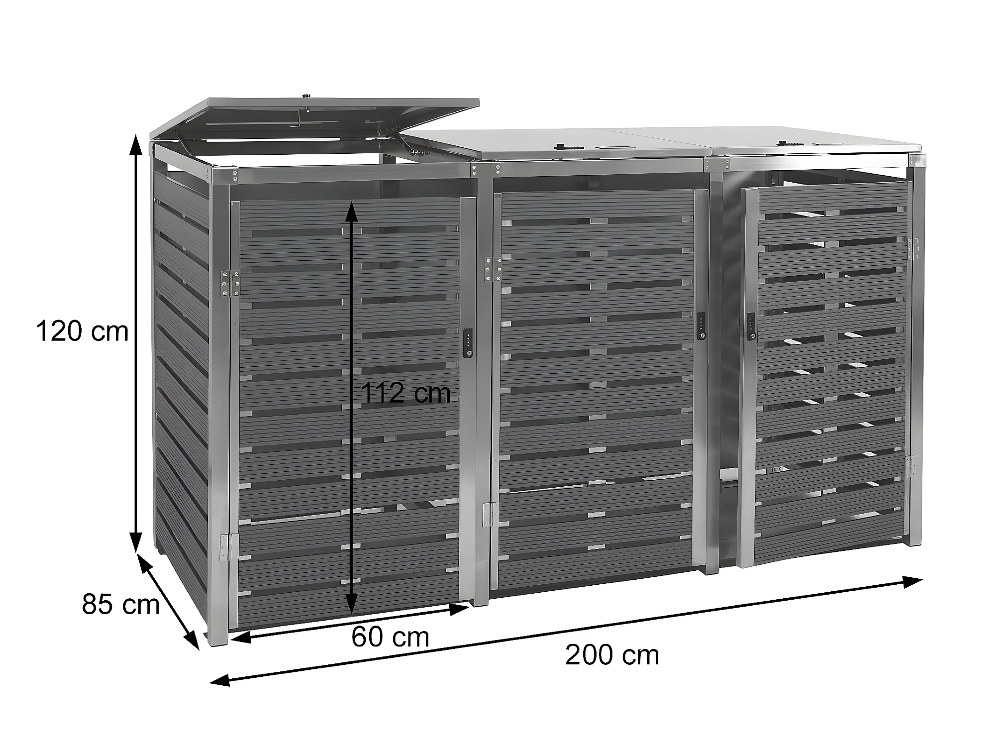 3x copribidoni box spazzatura rifiuti MCW-E83 98x212x116cm acciaio zincato antracite