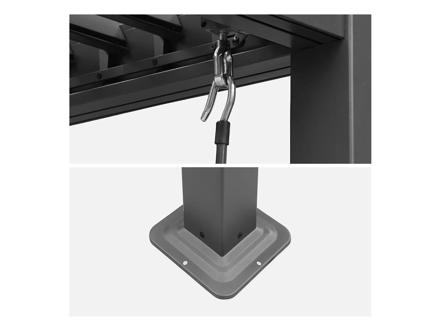 Pergola bioclimatica 3x4m in alluminio e acciaio + tenda 4m, antracite