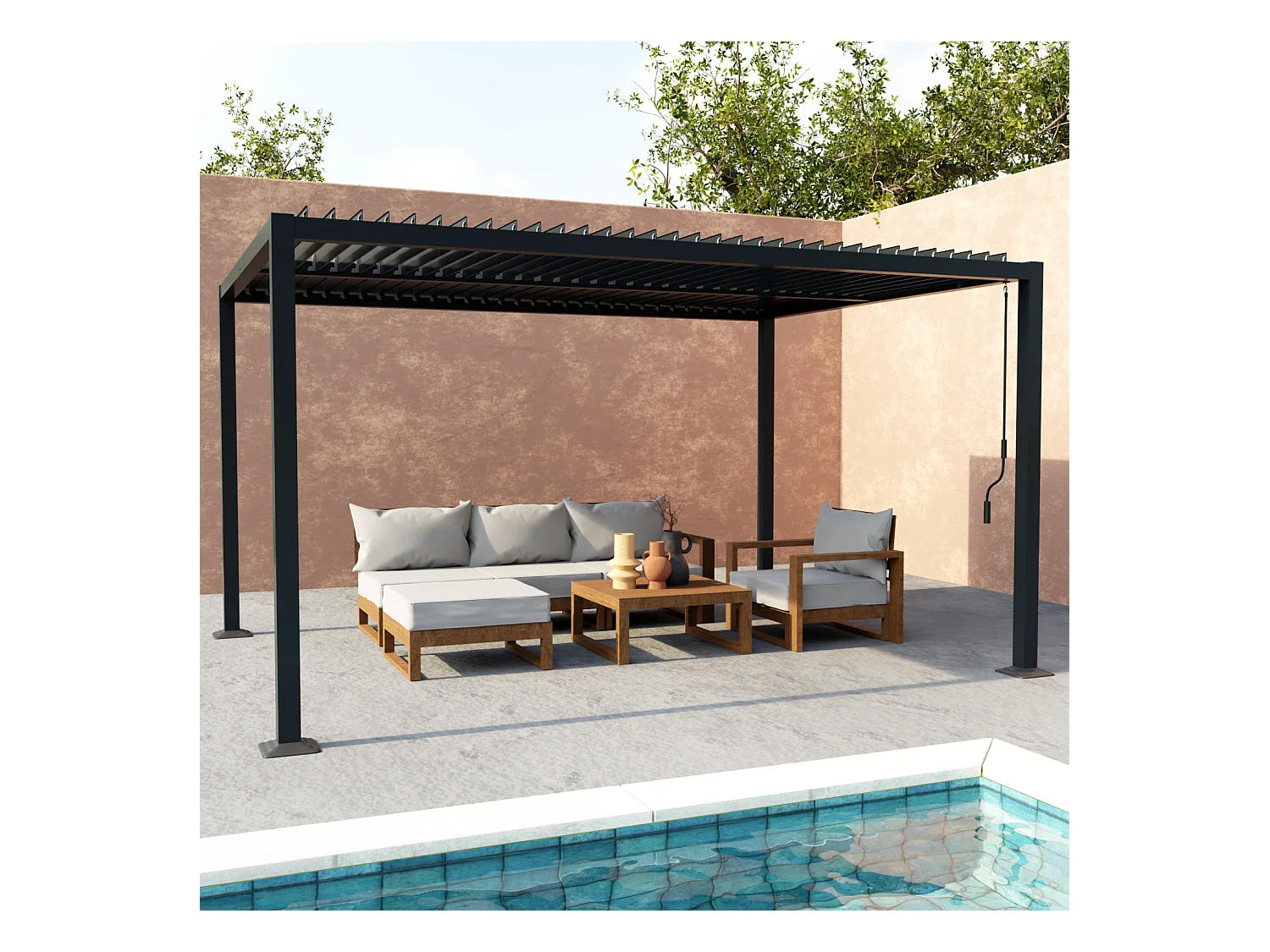 Pergola bioclimatica 3x4m in alluminio + tenda da sole 4m, antracite
