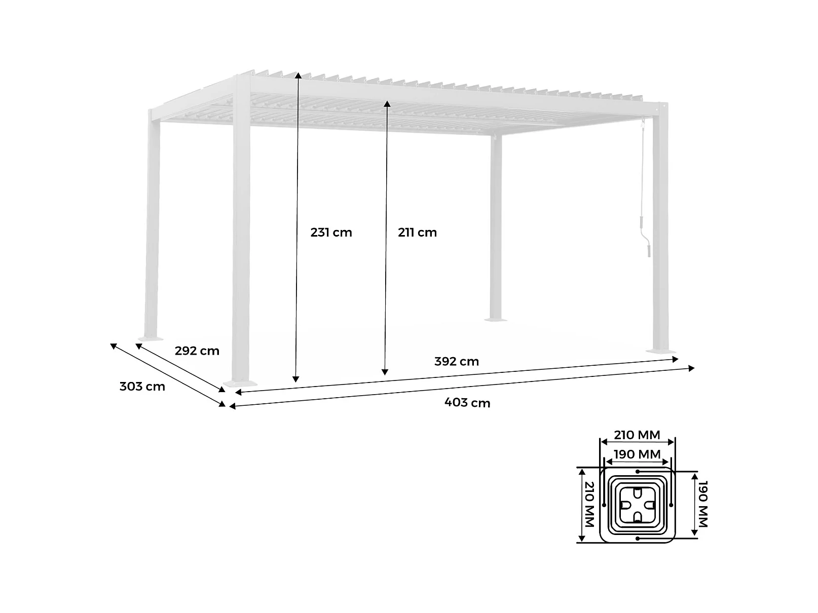 Pergola bioclimatica 3x4m in alluminio e acciaio, lame orientabili ,
