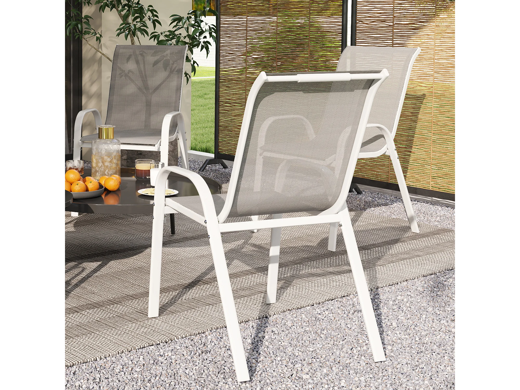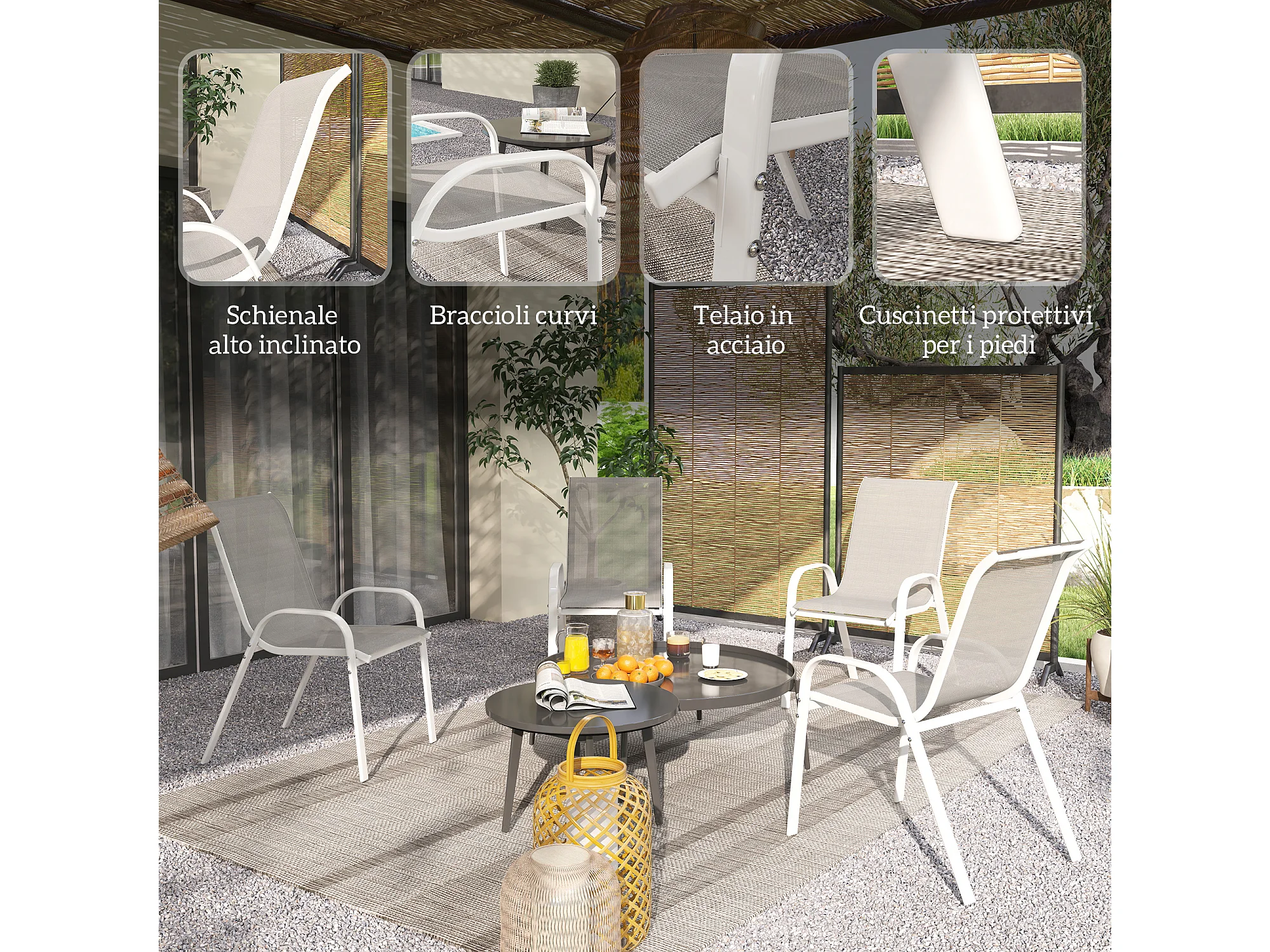 4 sedie da giardino impilabili e traspiranti 54x71x93 cm bianco grigio
