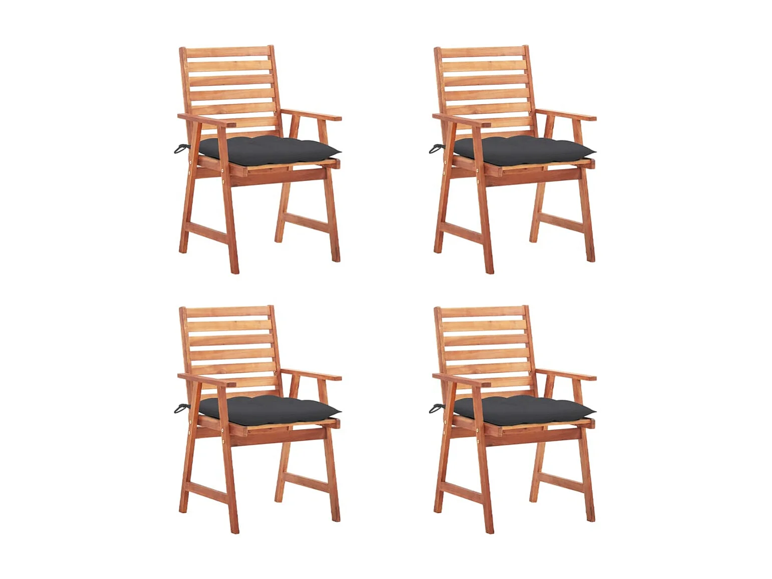 4 sedie da pranzo da esterno con cuscini in massello di acacia