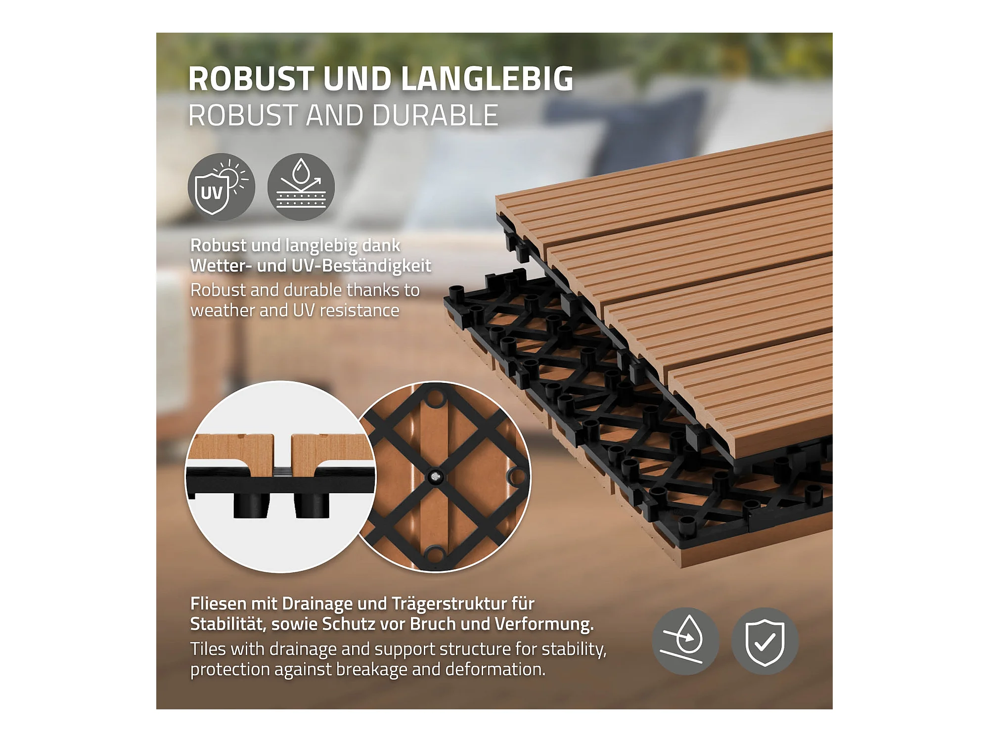 ECD Germany Piastrelle per terrazze wpc 30x30 cm marrone scuro set 44 pz 4 m² effetto legno con drenaggio clic per balconi giardini pavimenti esterni