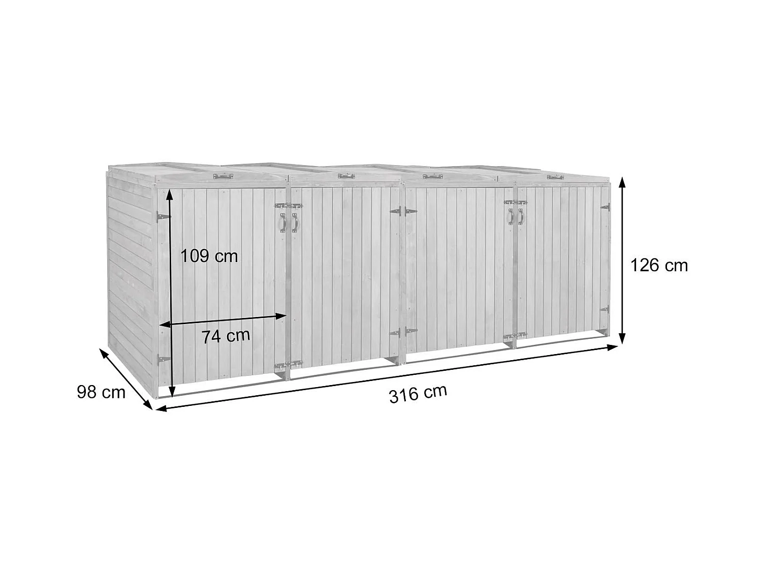 4x copribidoni box spazzatura rifiuti MCW-H74 98x316x126cm legno abete grigio bianco