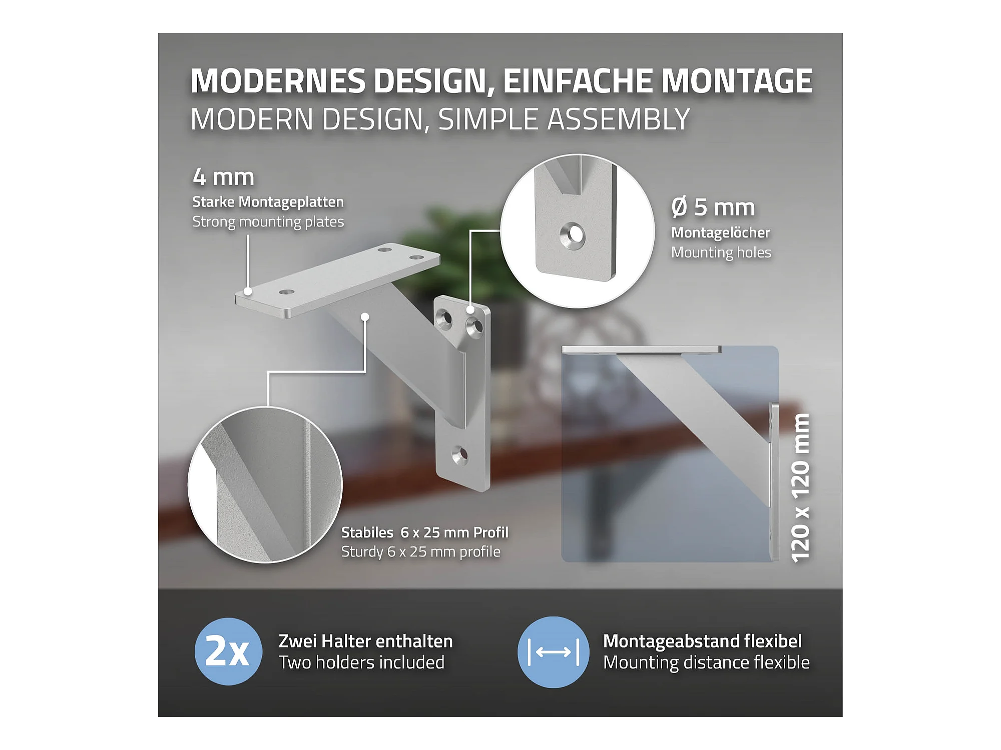 4x Staffa per mensola argento 120 mm alluminio reggimensola galleggianti a muro