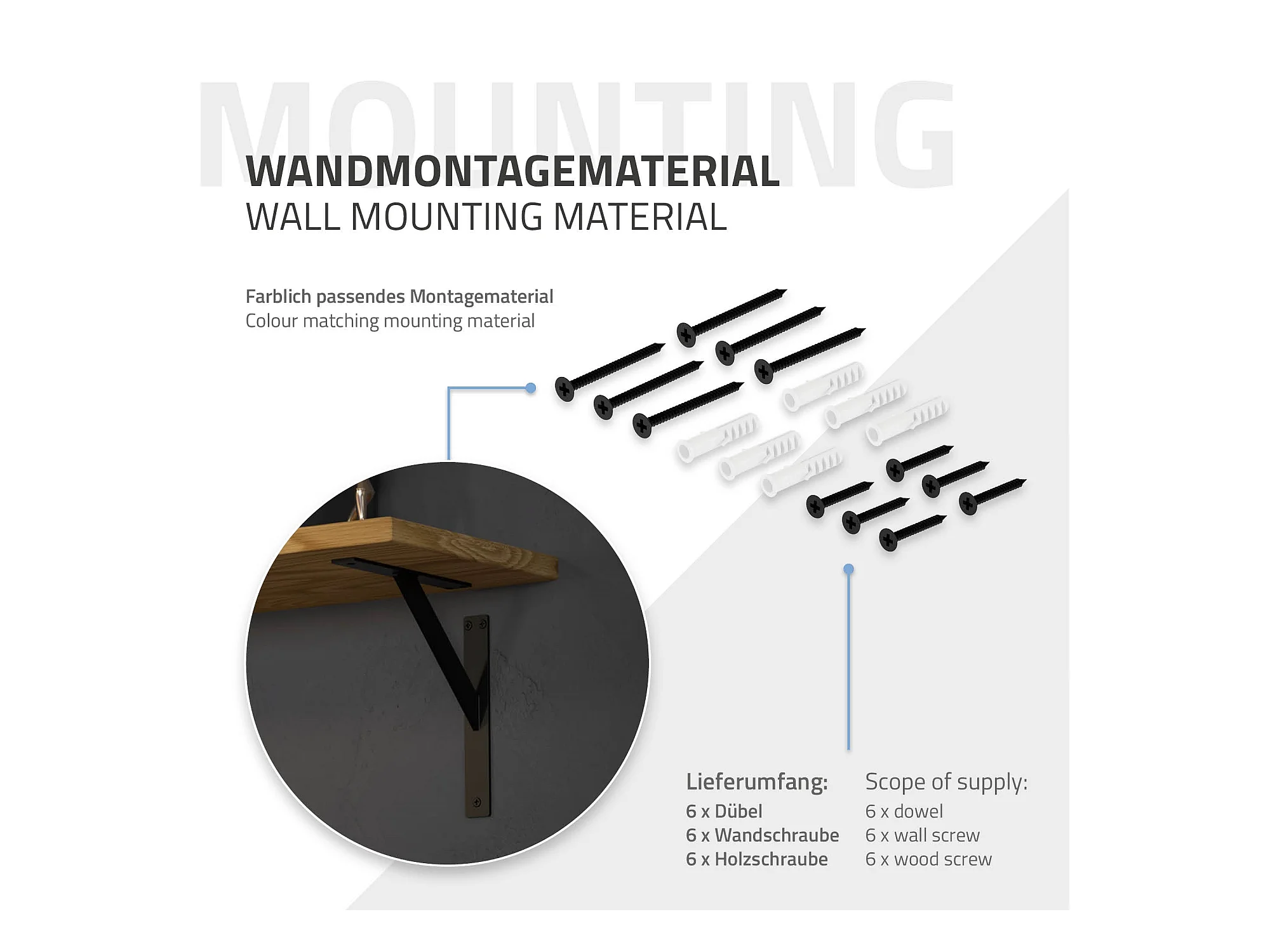 Reggimensola triangolare 2 pezzi 16x15,5x17 cm Metallo nero ML-Design
