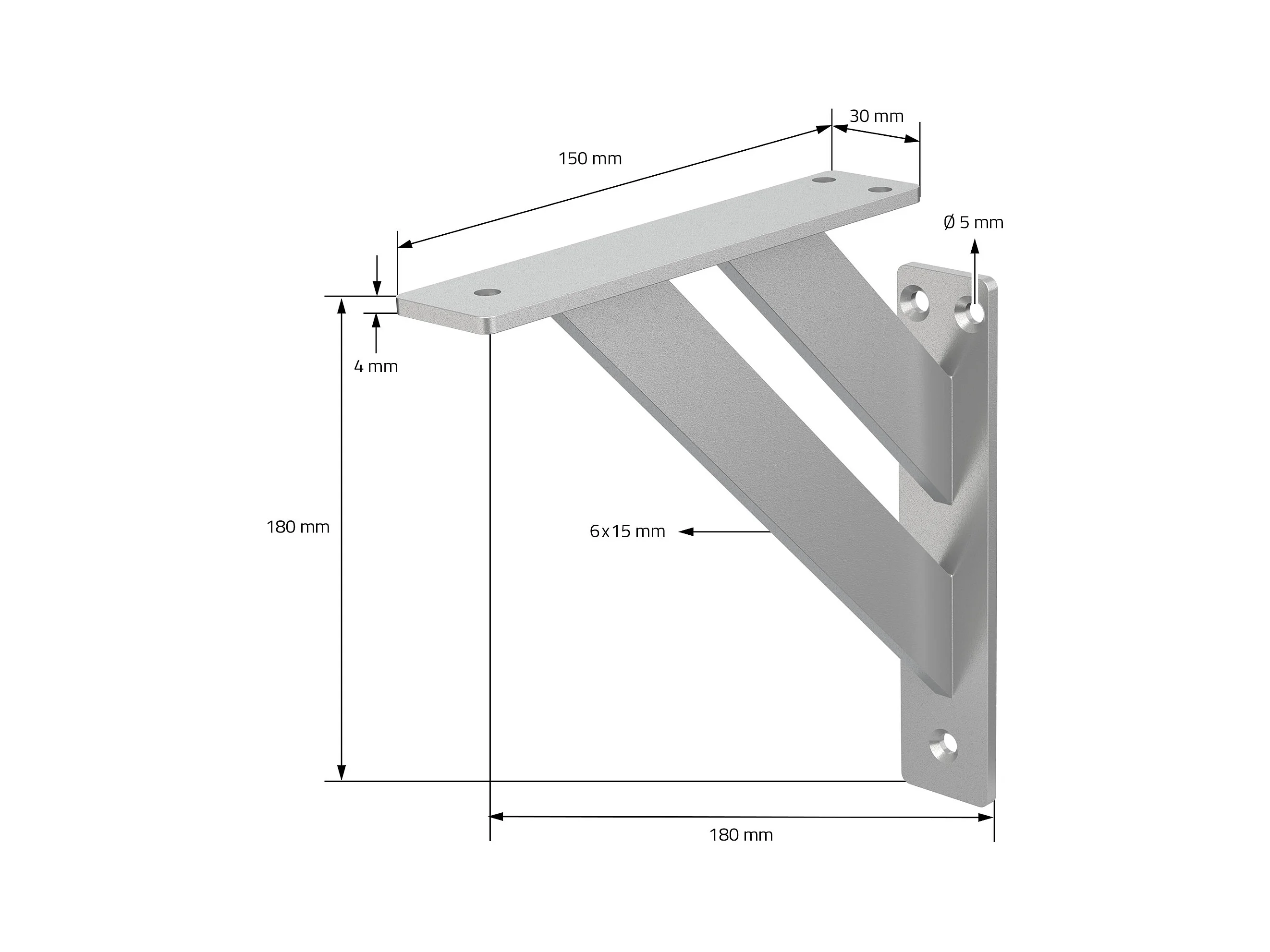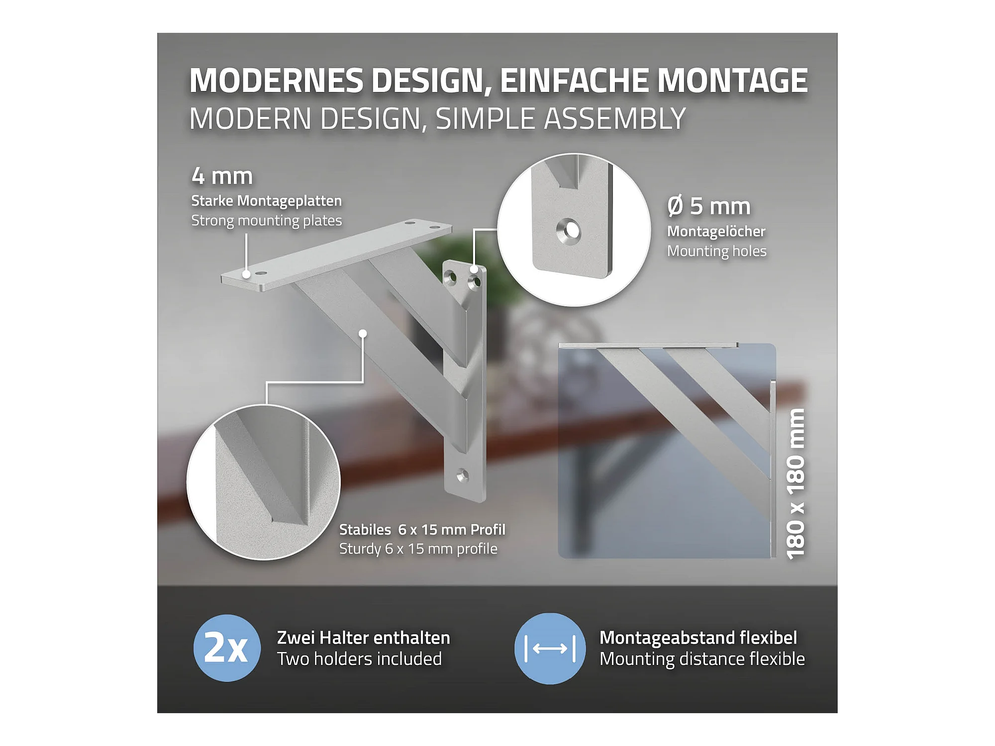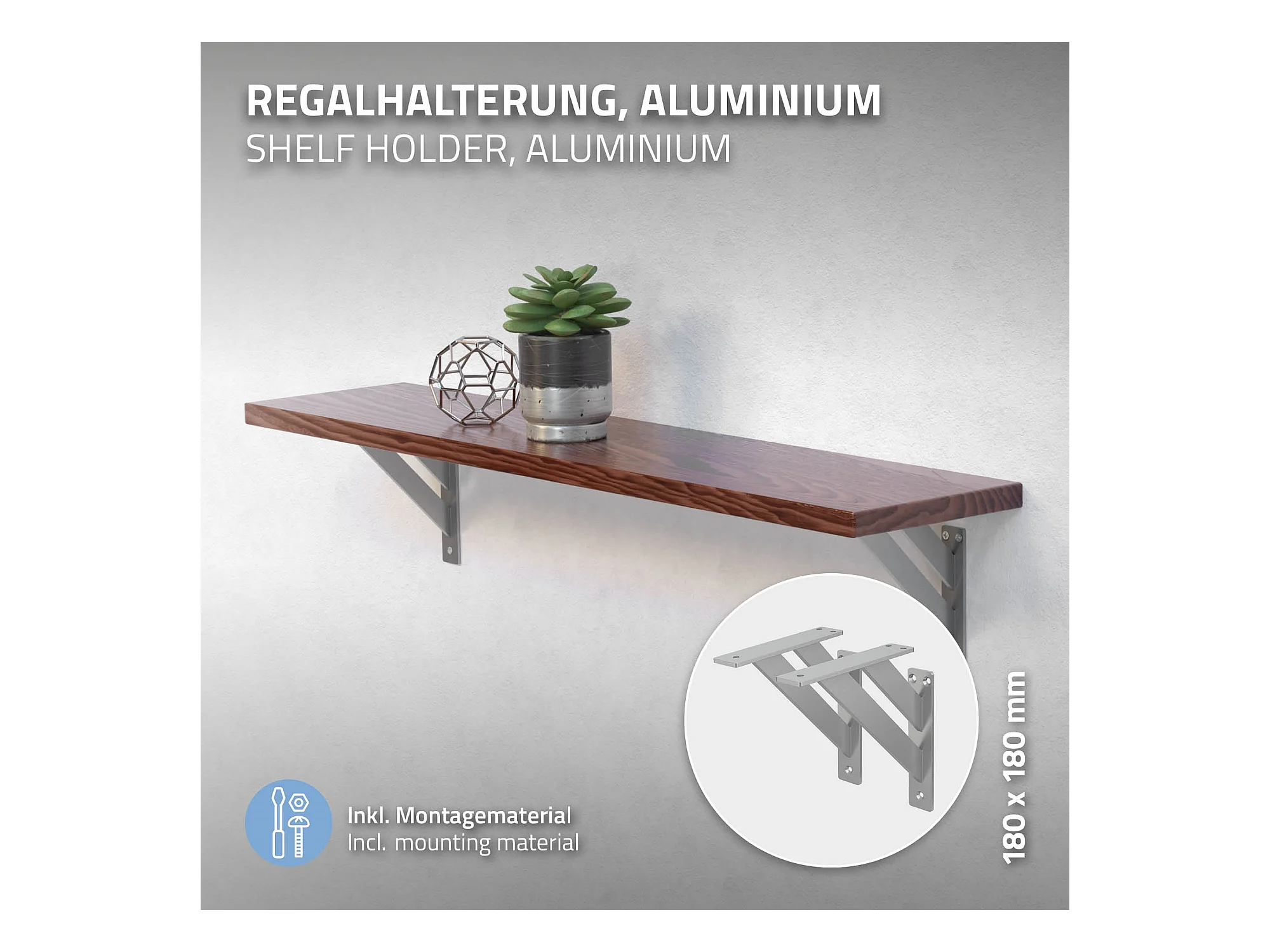 4x Staffa per mensola argento 180 mm alluminio reggimensola galleggianti a muro