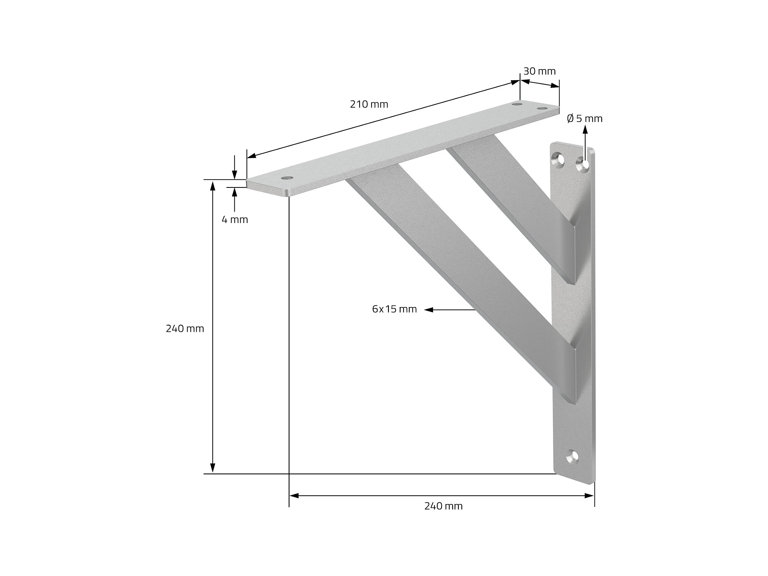 4x Supporto per mensole in alluminio argento 24x24 cm staffe per mensola pesanti