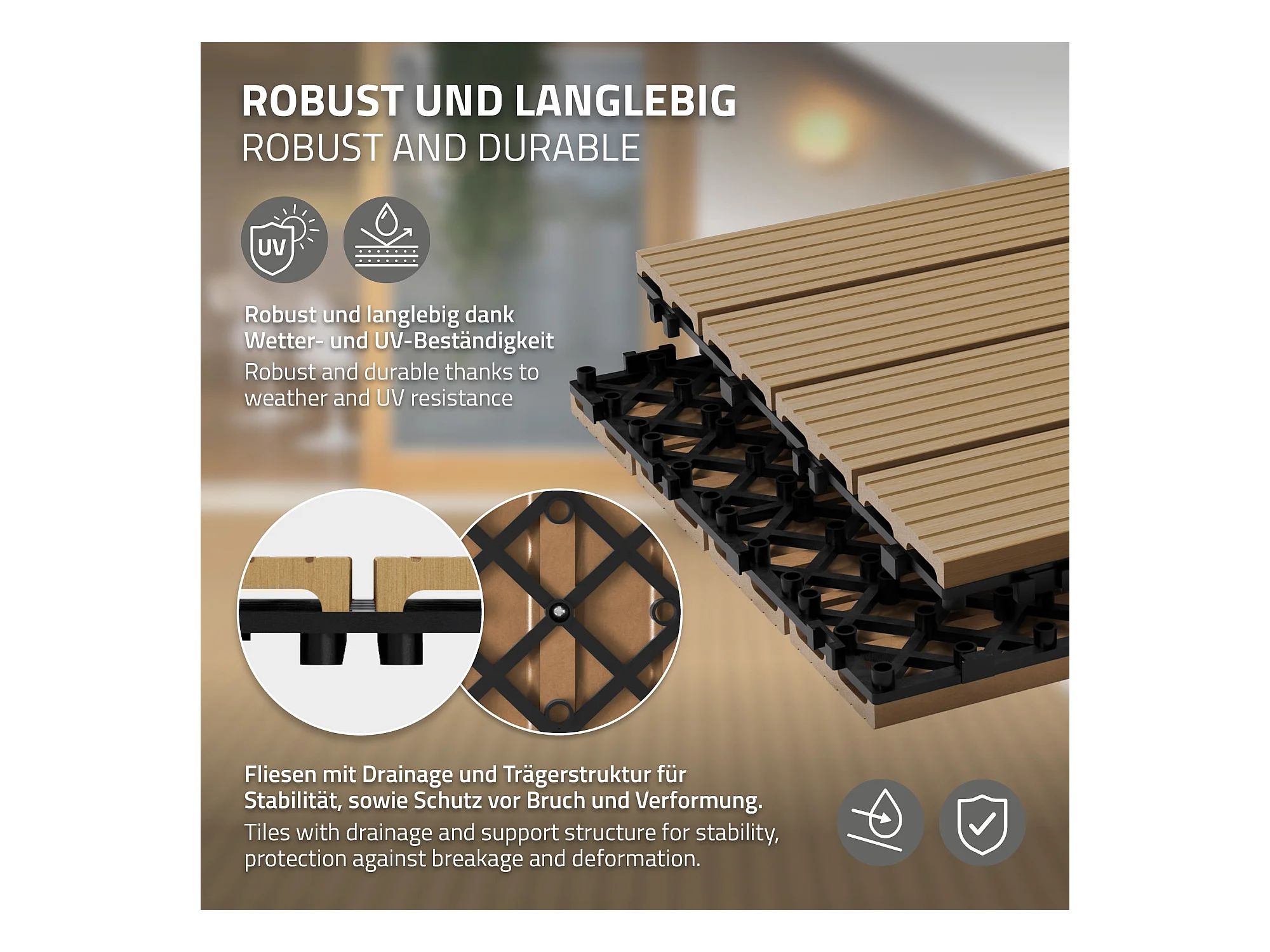 Piastrelle WPC effetto legno 60x30cm 1 m² pavimento in teak ECD Germany
