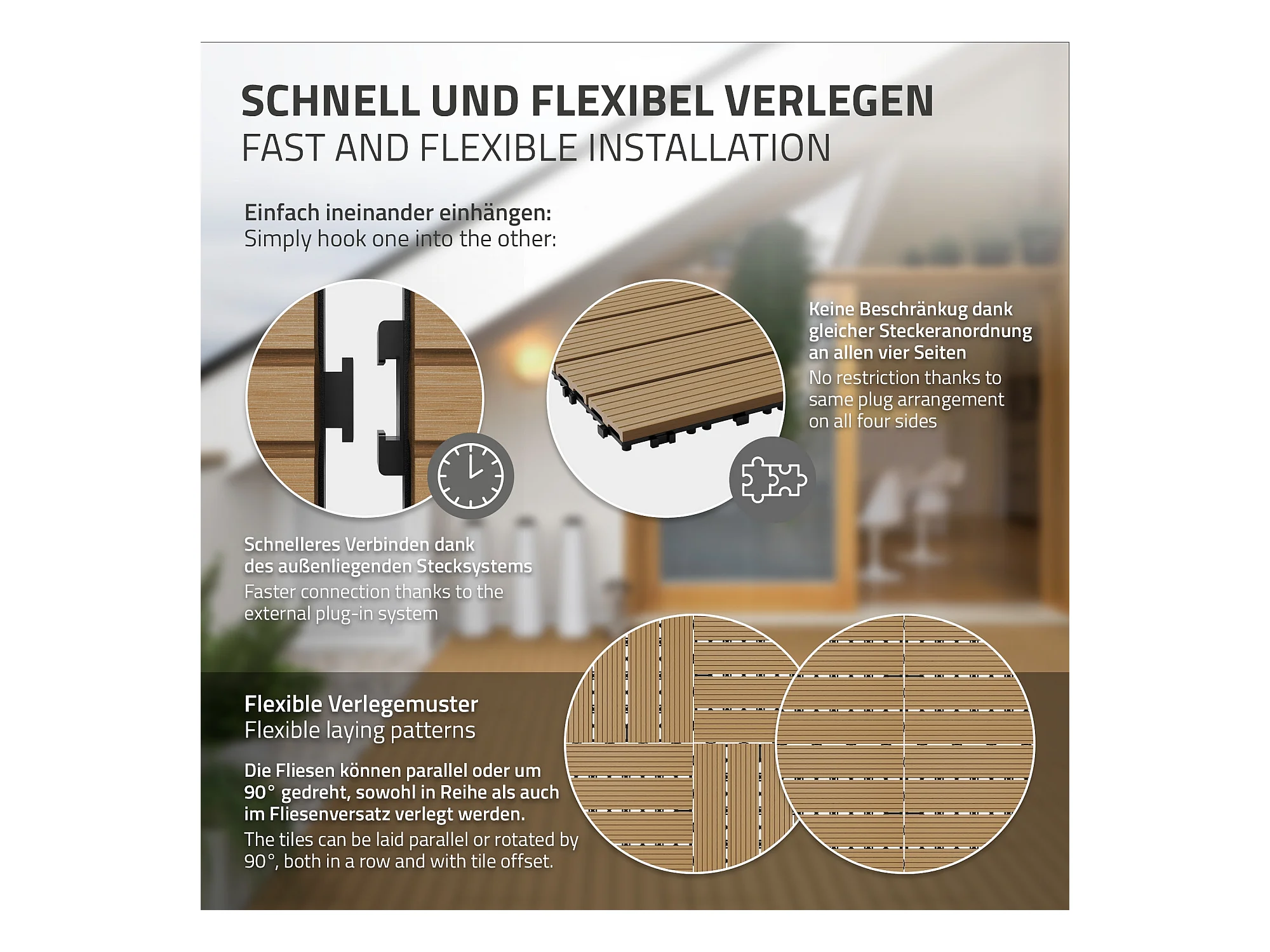 4x WPC decking tiles balcone piastrelle click legno 60x30cm ECD Germany