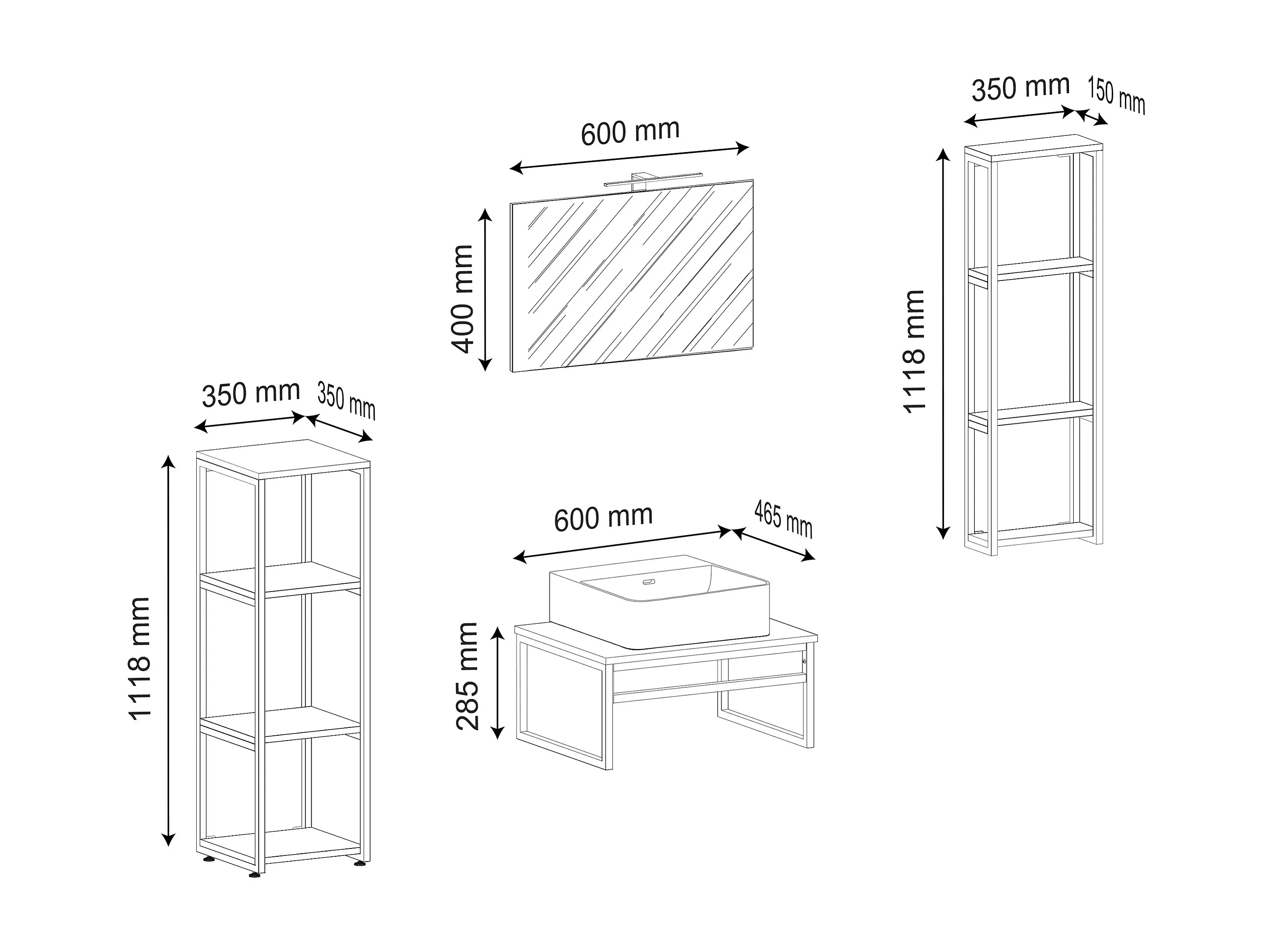 Gruppo lavabo 5 pezzi Bitila 60