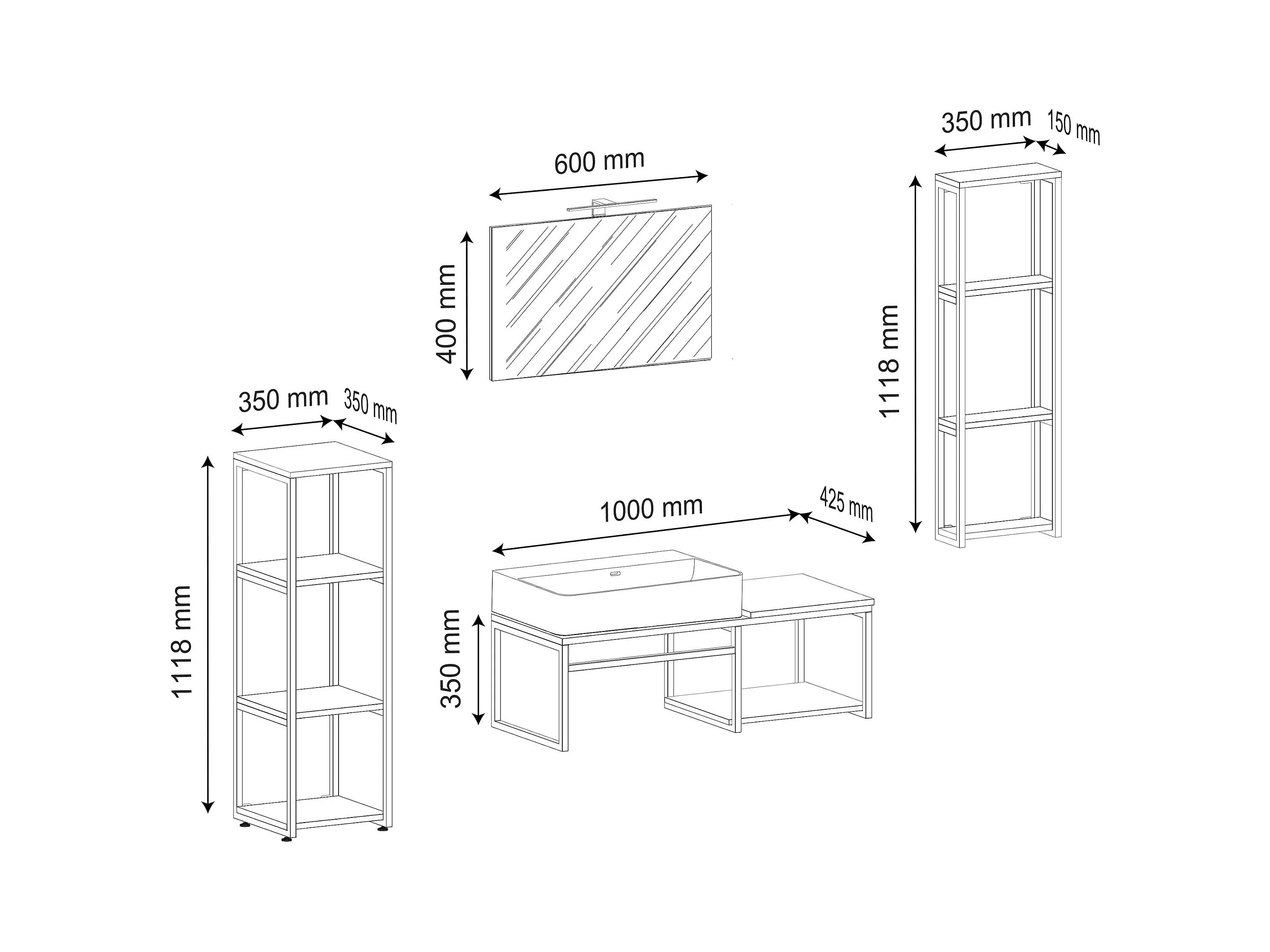 Mobili da bagno 5 pezzi Waschtich Bitila 100 V2