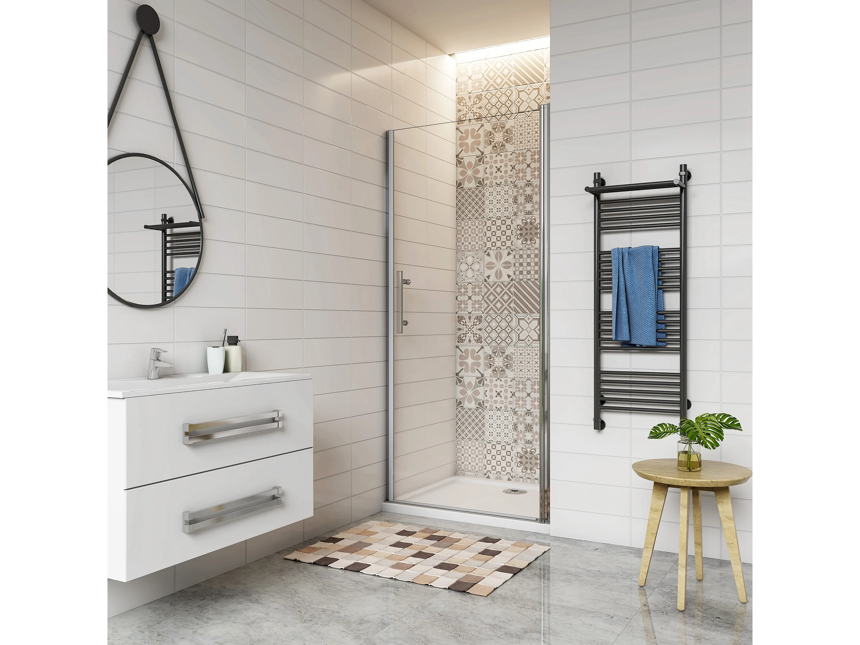 76x197cm Porta Doccia Per Nicchia Apertura Battente In Vetro 6 mm Temperato Trasparente Anticalcare Telaio Cromo Lucido