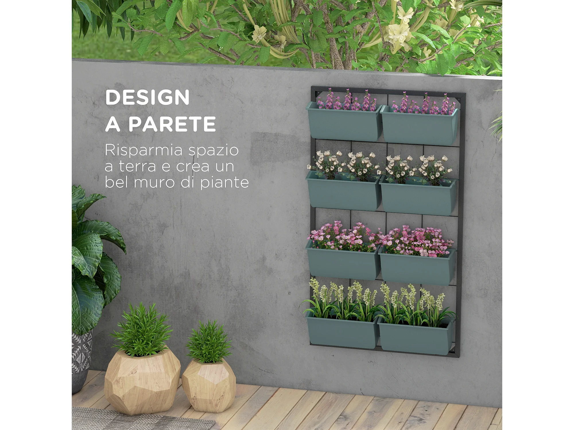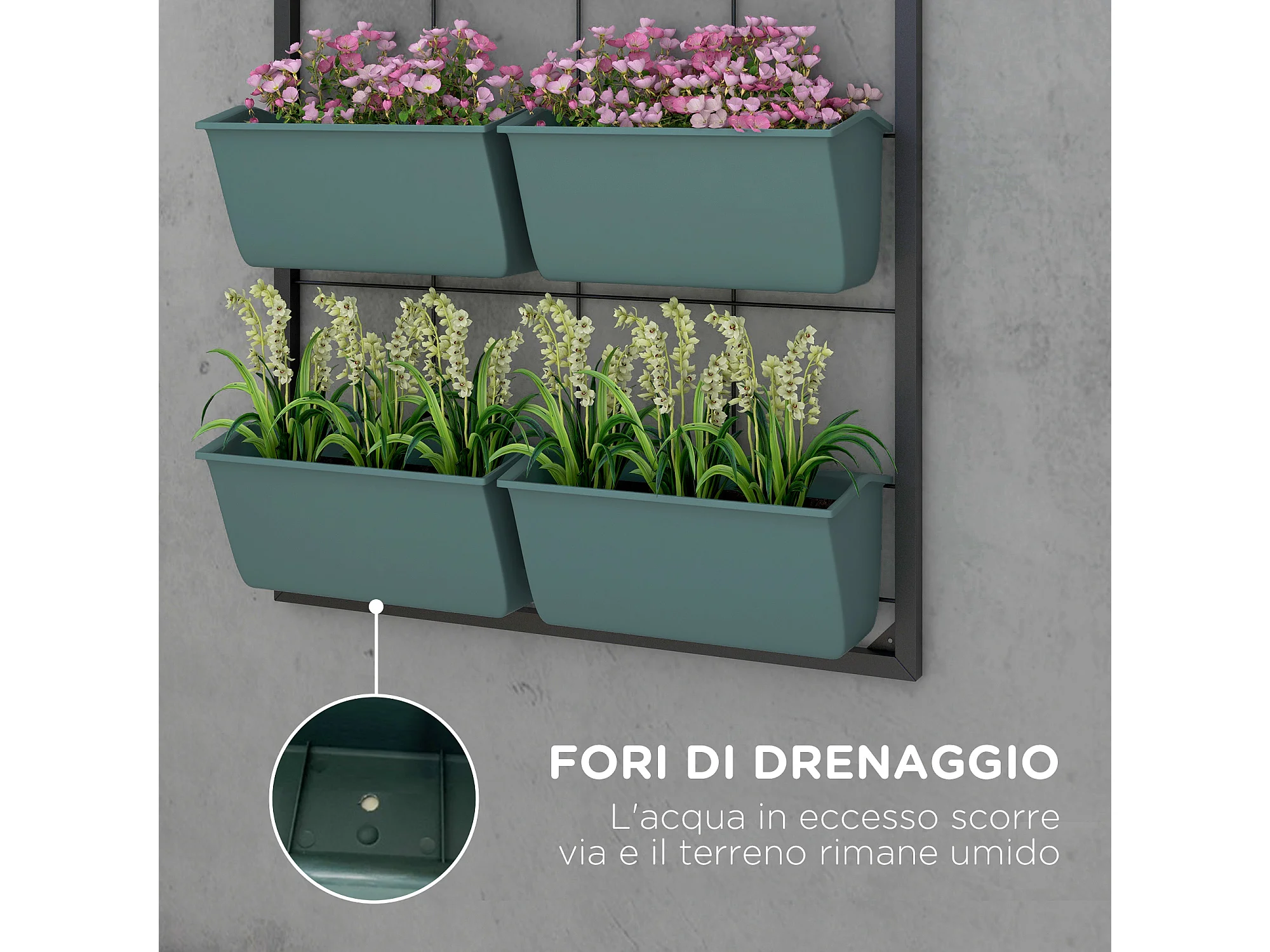 8 vasi da giardino su 4 livelli in acciaio e plastica verde