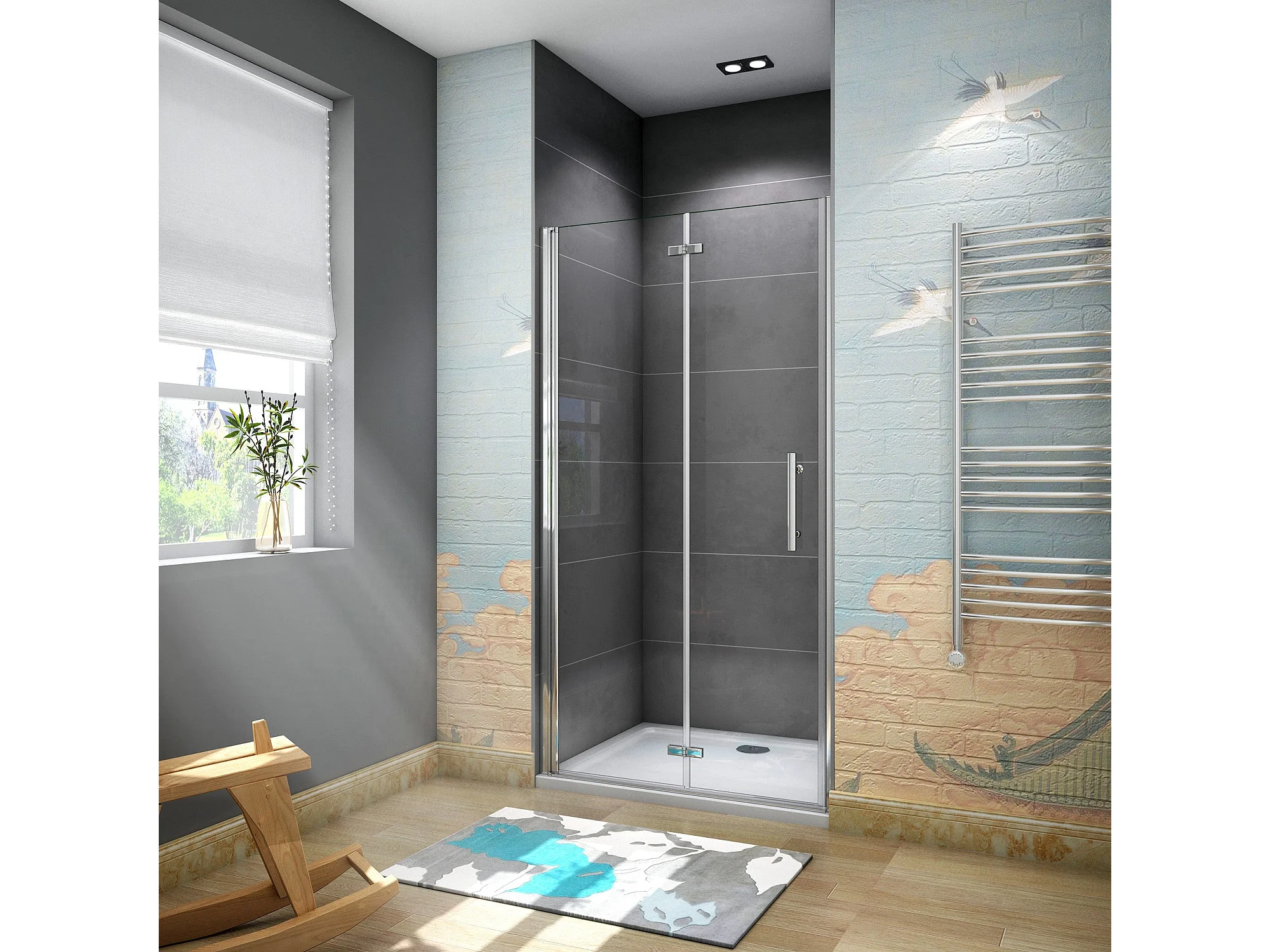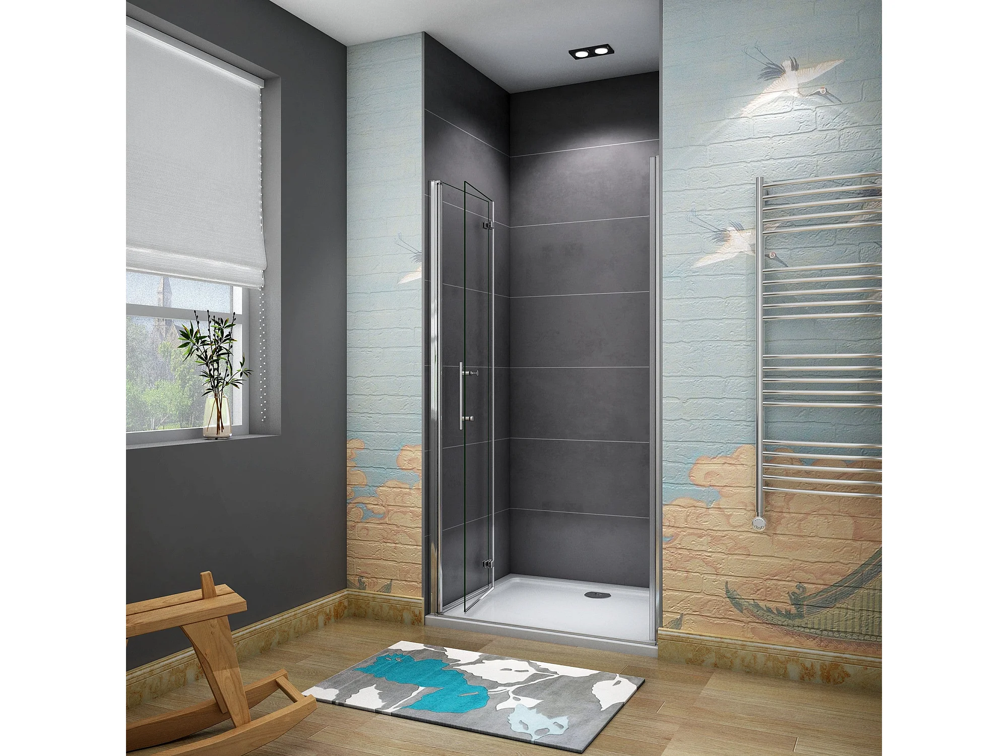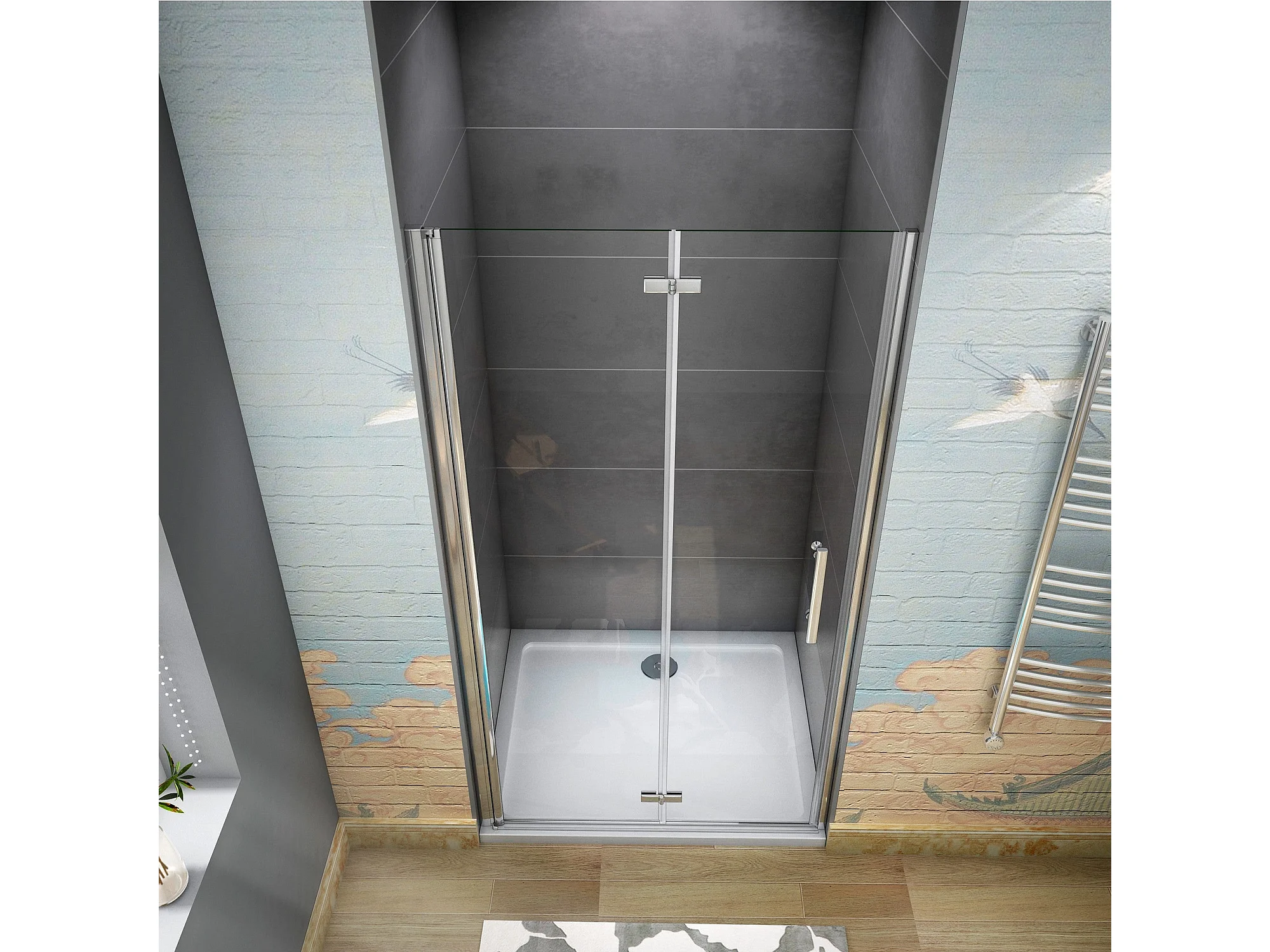 80x185 cm Porta Doccia Per Nicchia Pieghevole-Battente a Libro In Vetro Da 6mm Temperato Trasparente Anticalcare